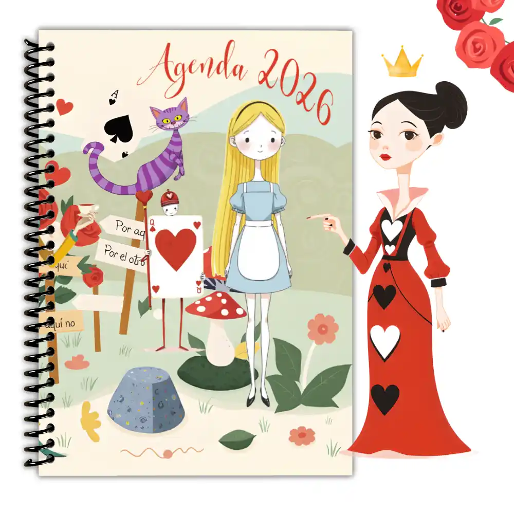 En 2024, mi hermana (que se llama Alicia) me pidió que diseñara para ella una agenda temática especial. Inspirada en el libro original de Lewis Carroll, creé ilustraciones propias y diferentes, que más tarde dieron origen a esta agenda Alicia en el País de las Maravillas para 2026. Es un proyecto personal convertido en producto, hecho con cariño y con la ilusión de compartir esa magia con más personas.