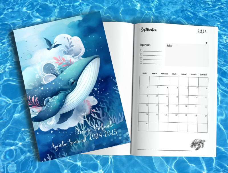 Sumérgete en la belleza de las profundidades del océano mientras mantienes tus actividades organizadas con nuestra Agenda Semanal 2024-2025 de la colección Dulces Recuerdos. Diseñado para entusiastas del mar, el océano y el mundo submarino, esta agenda es tu compañera perfecto para el próximo curso académico.