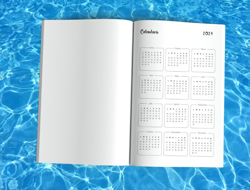 - 142 PÁGINAS en total, incluido calendario 2024, 2025, calendarios mensuales de septiembre a agosto, vista semanal y páginas adicionales