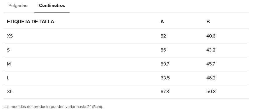 Guía de tallas