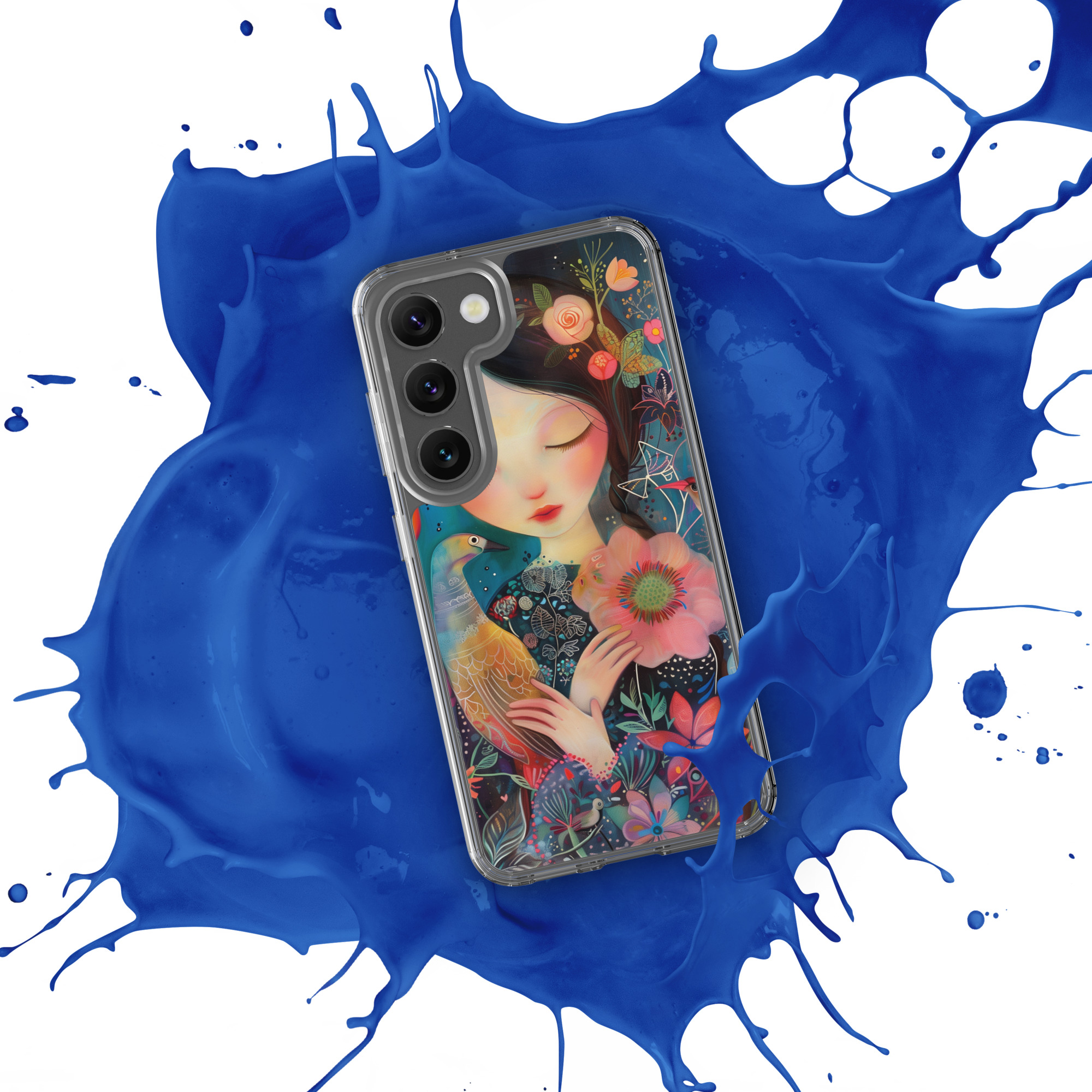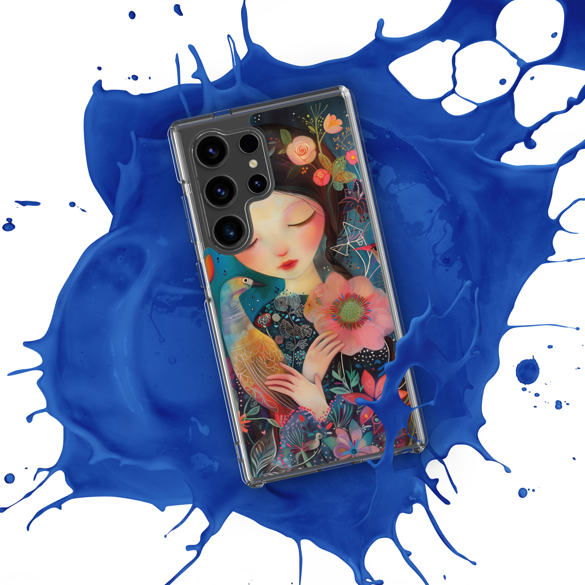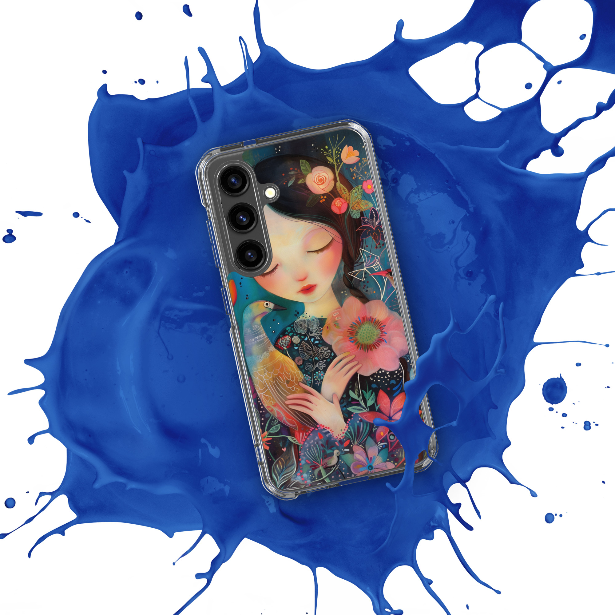 Protege tu Samsung® con estilo y elegancia con nuestra Funda Transparente Sweet Lady. Con un diseño colorido y floral sobre un fondo azul con pájaros y mariposas, esta carcasa combina la belleza de la naturaleza con una protección duradera para tu dispositivo.