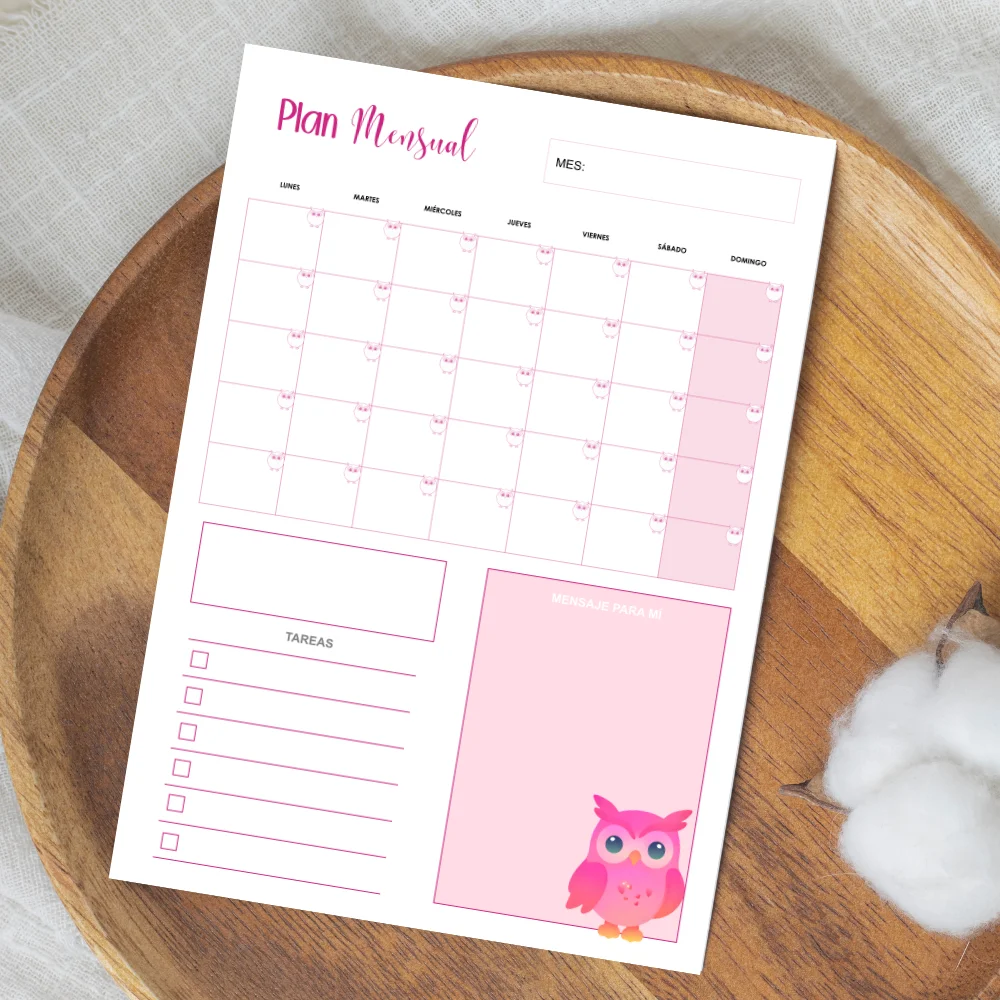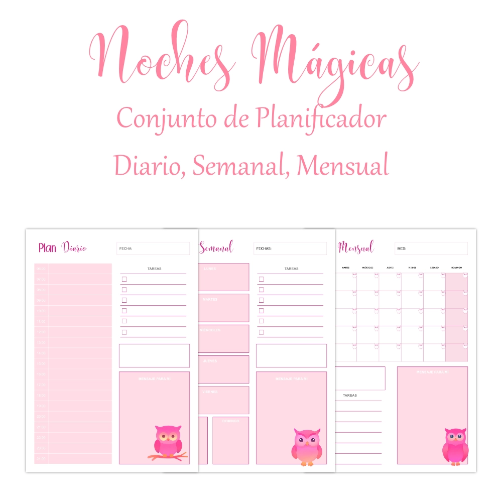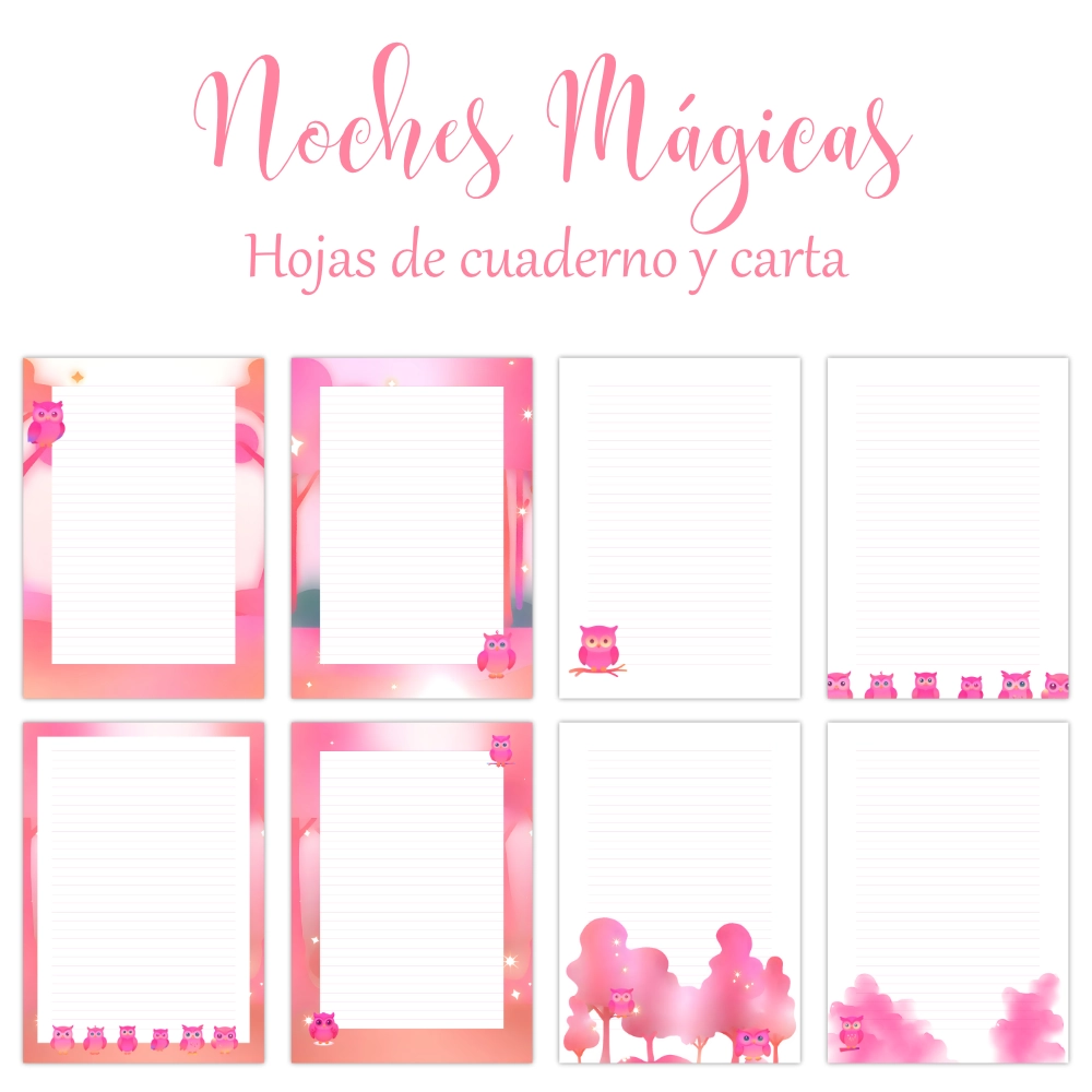 Combina la ternura, la fantasía y la creatividad. Diseñado con ilustraciones de adorables búhos en tonos rosas y fondos etéreos, ideal para niños/as, adolescentes y amantes de lo bonito y lo mágico.