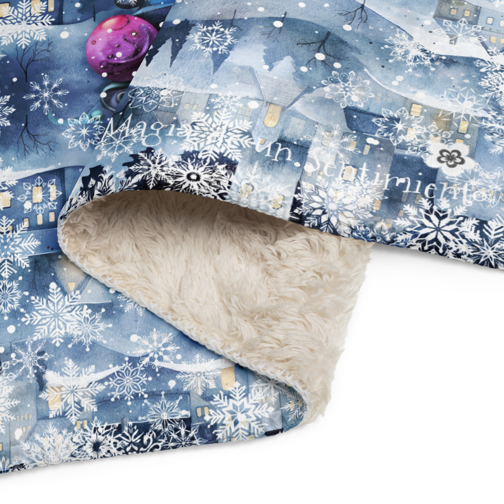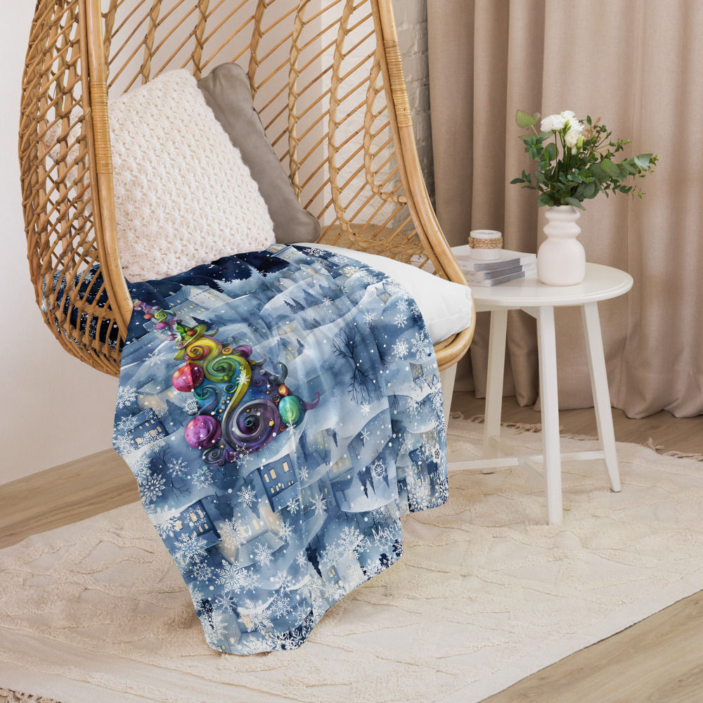 Manta con diseño de Árbol de Caramelo con colores y fondo de invierno