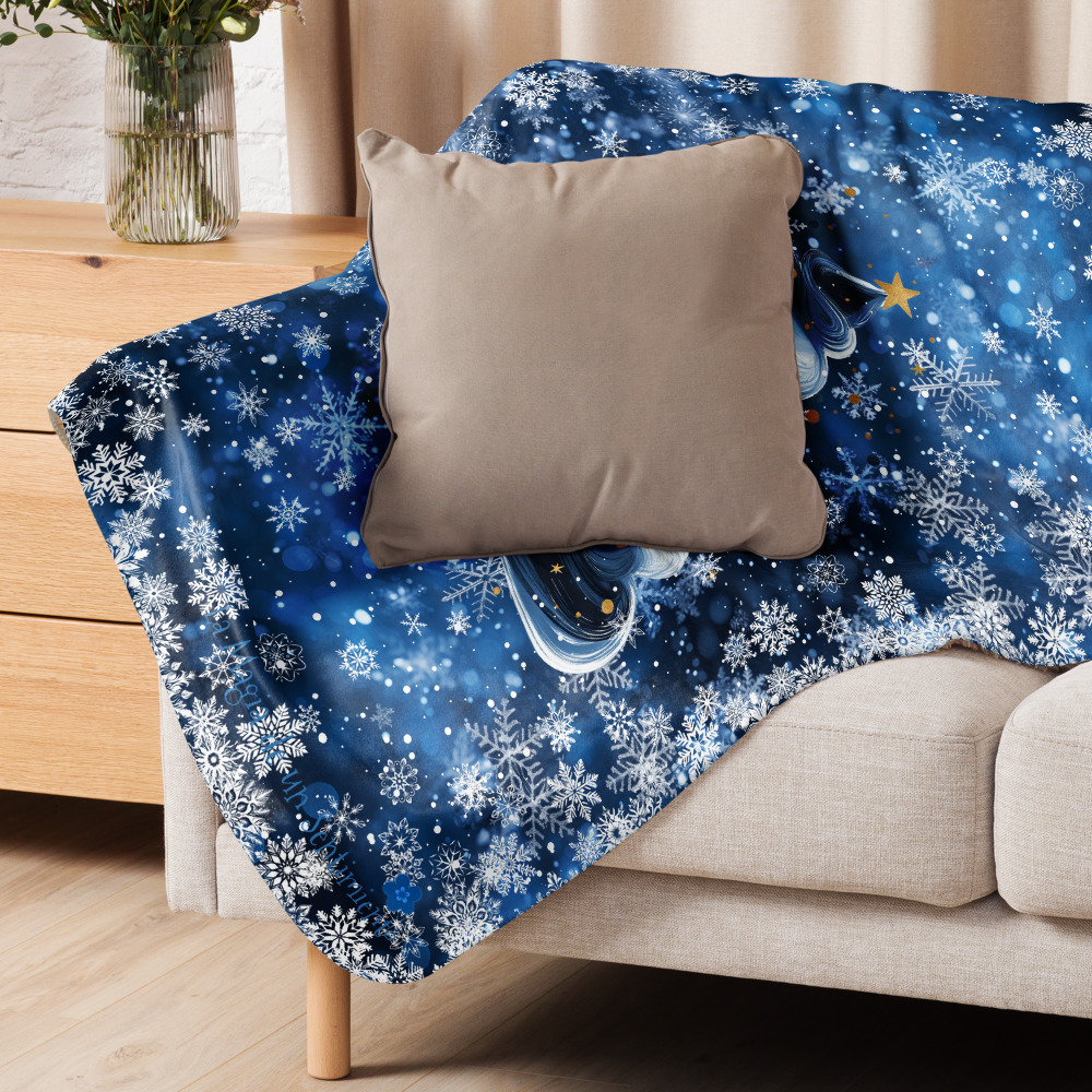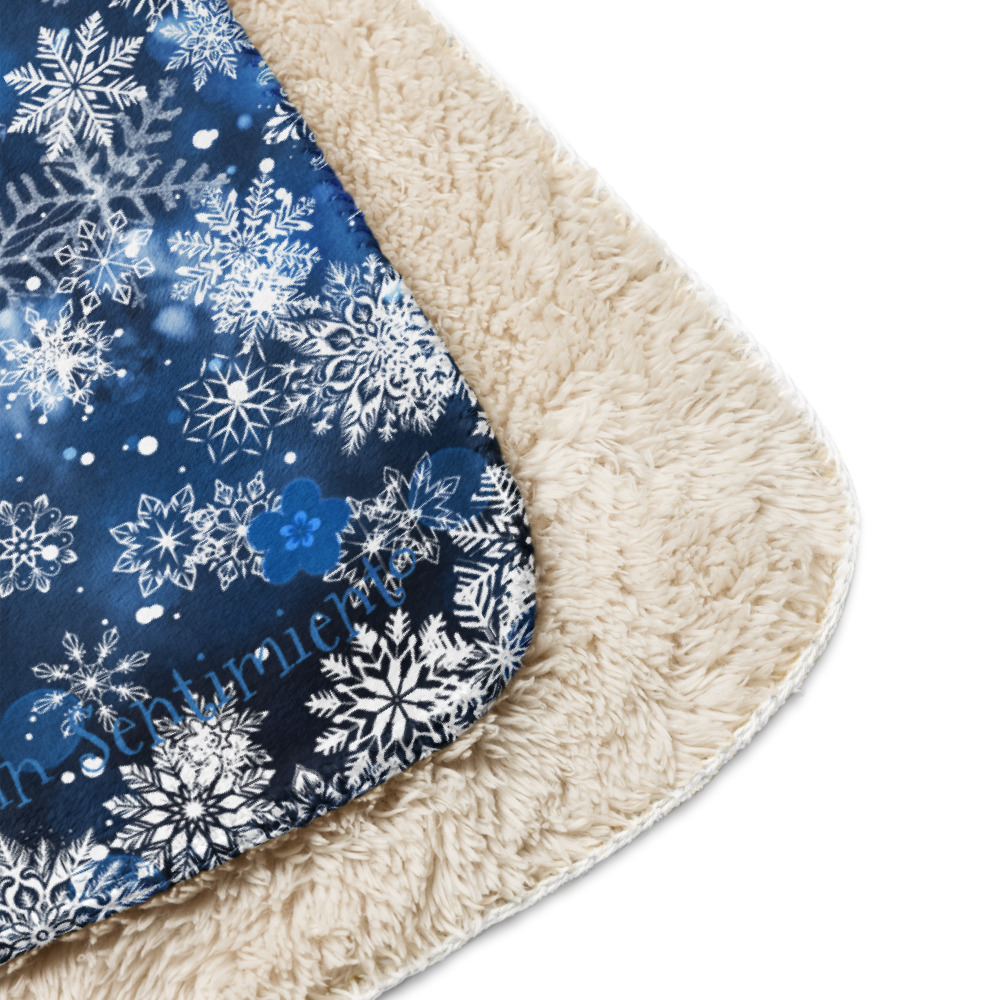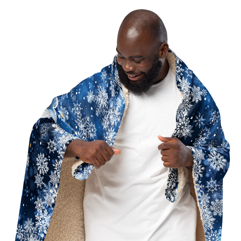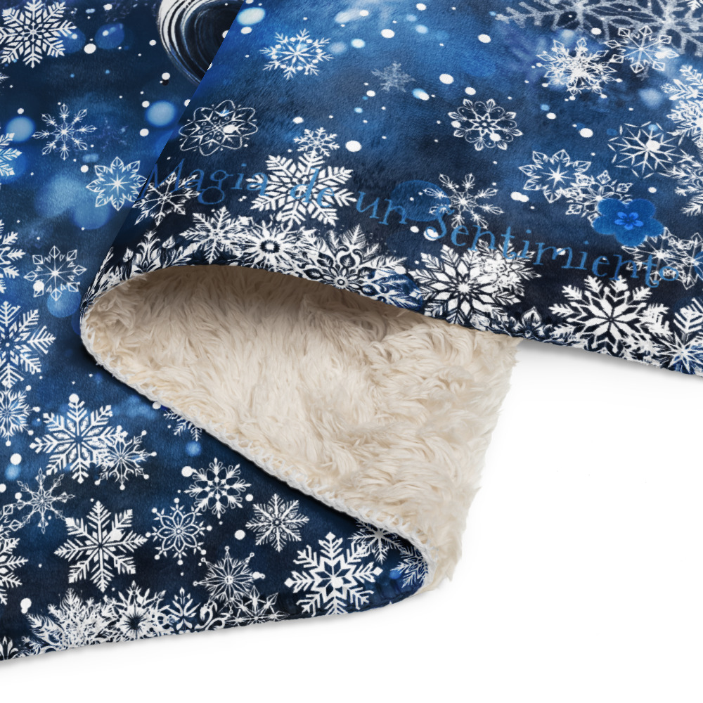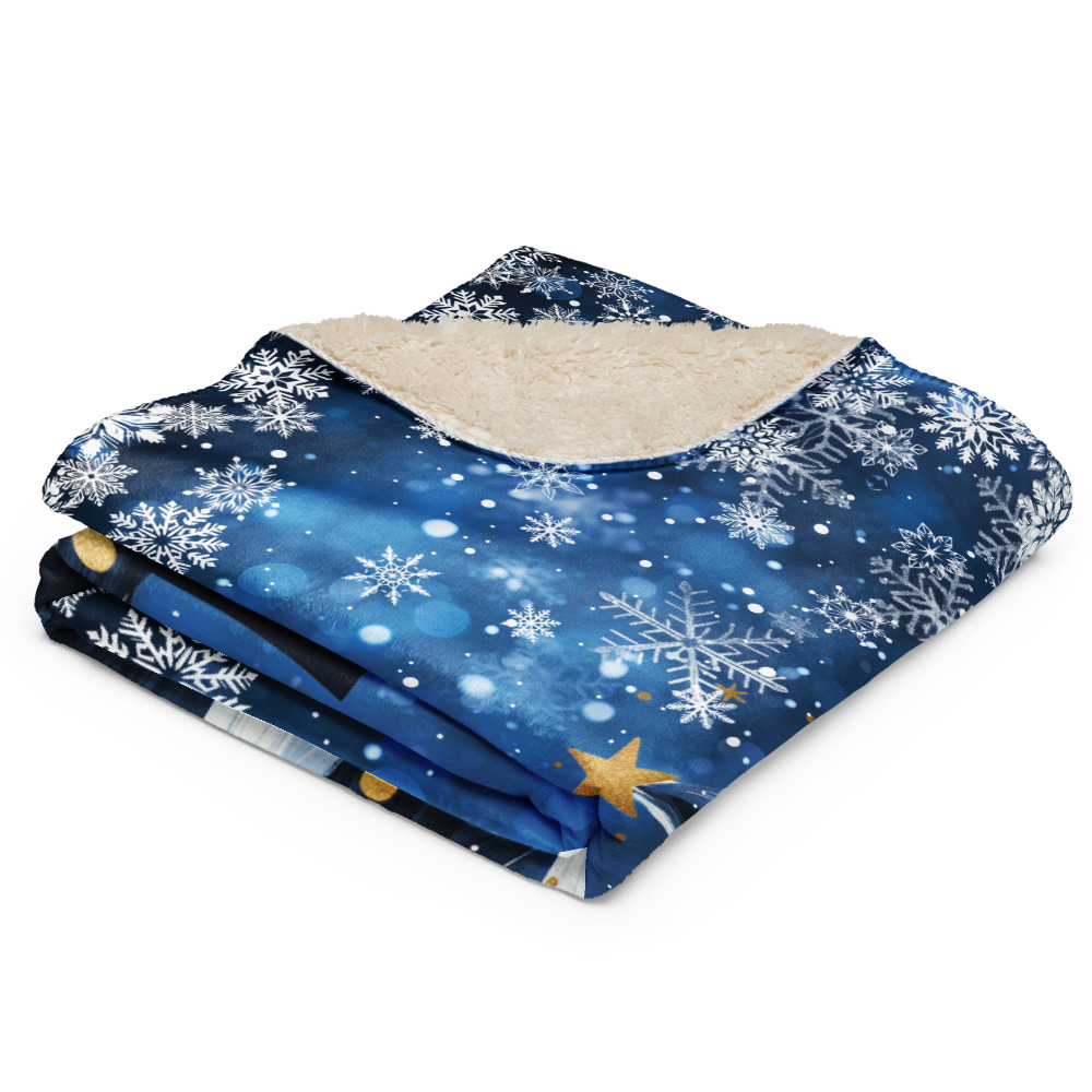 Manta con diseño de Árbol de fantasía en forma de Merengue sobre fondo azul de invierno y copos de nieve
