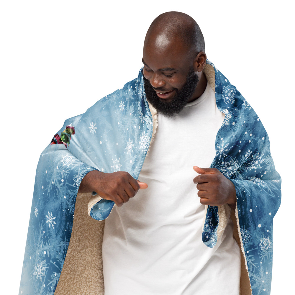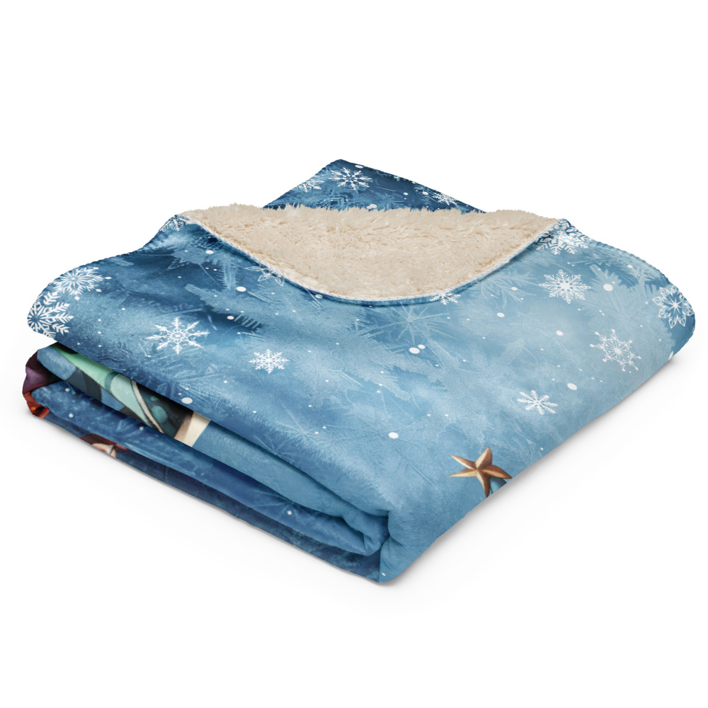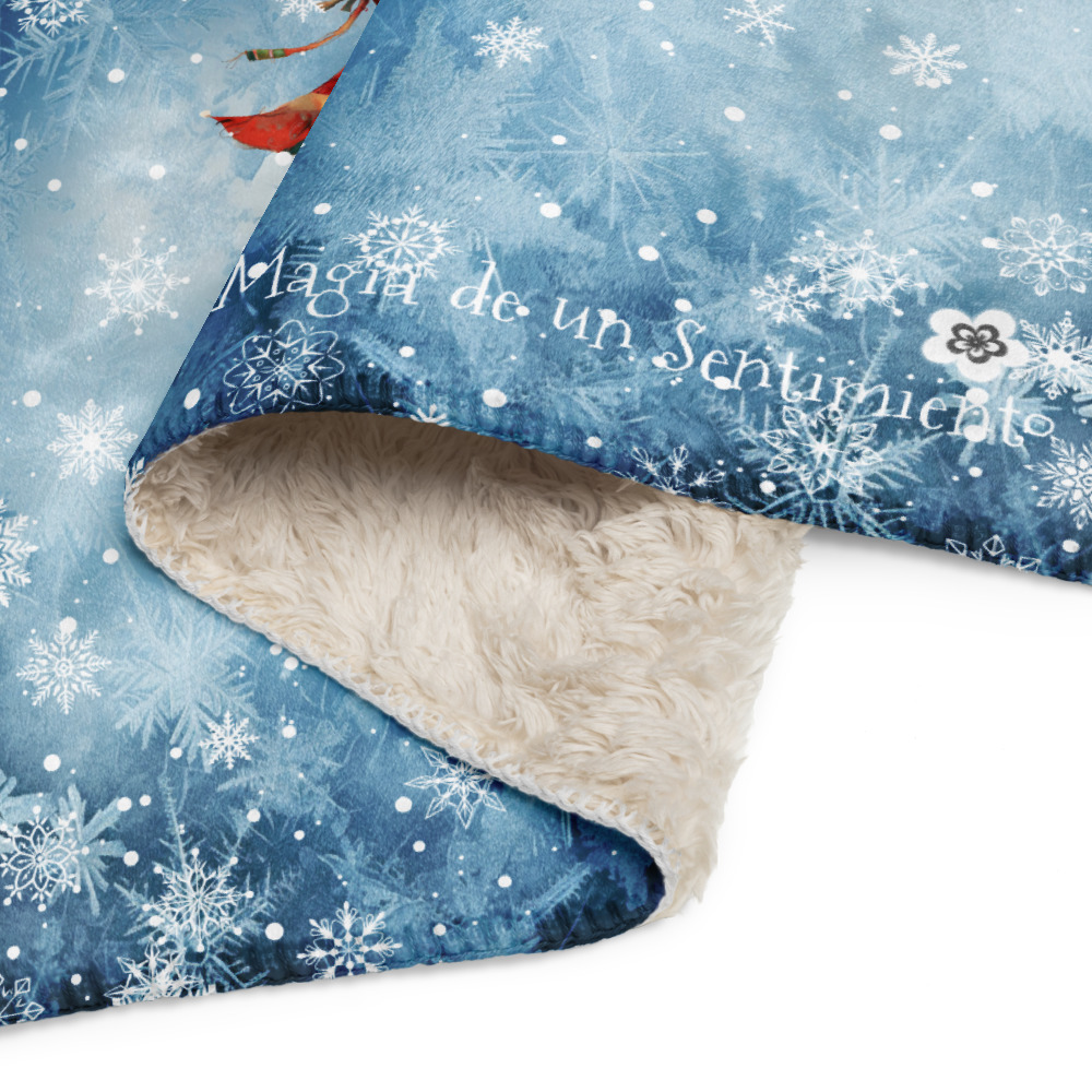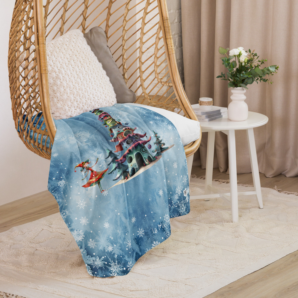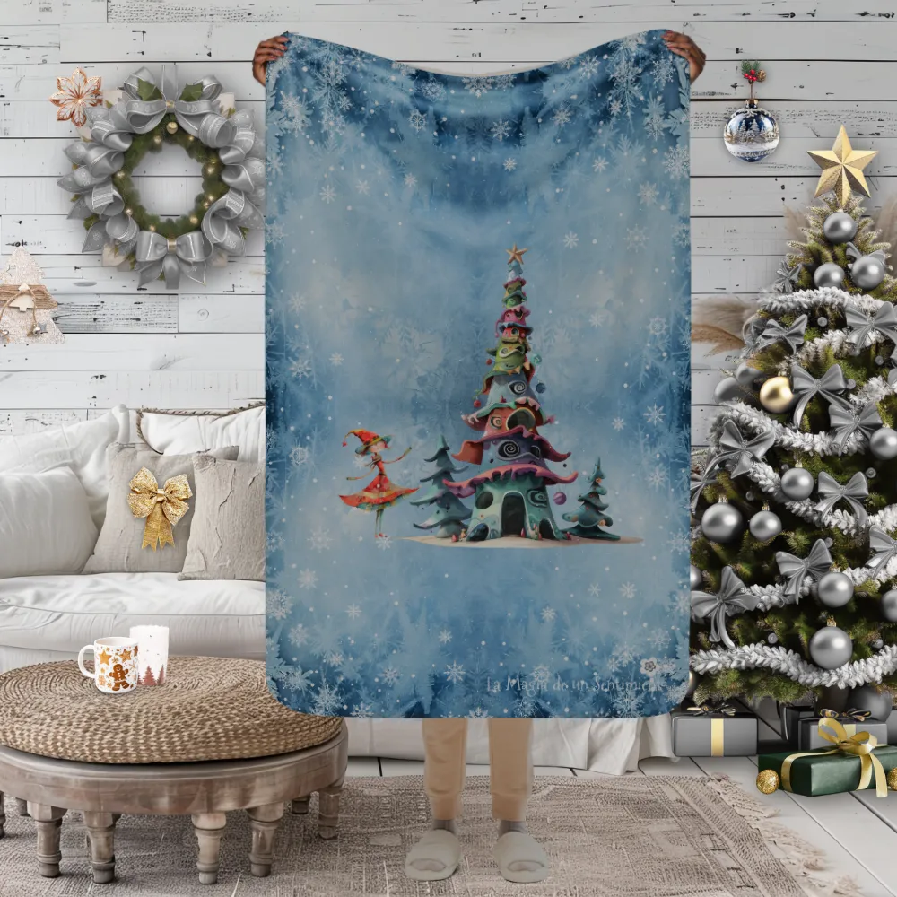 Manta con diseño de Árbol y Chica de cuento sobre fondo de invierno y copos de nieve