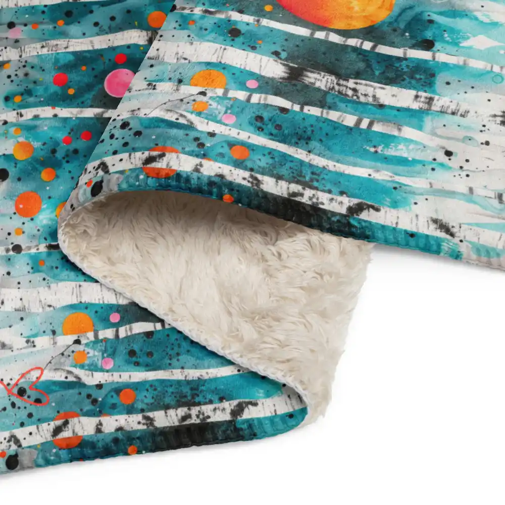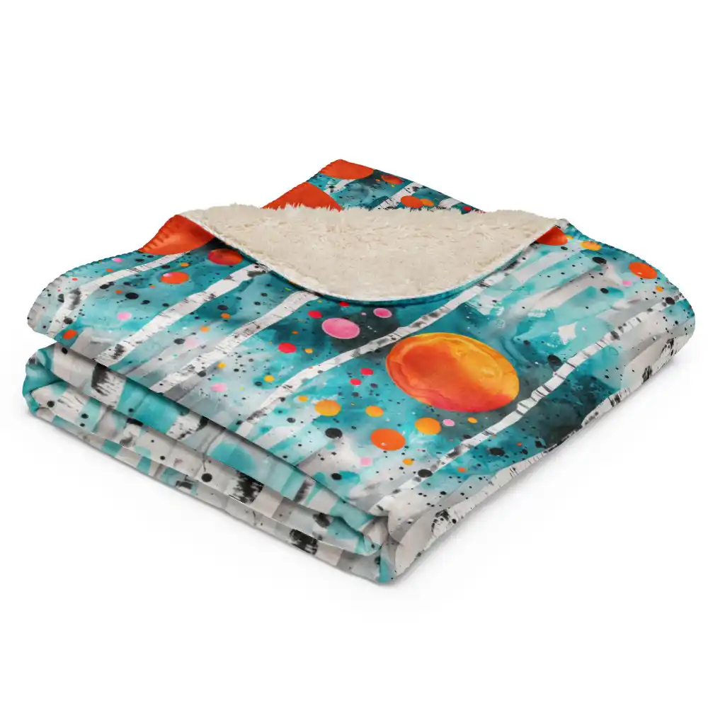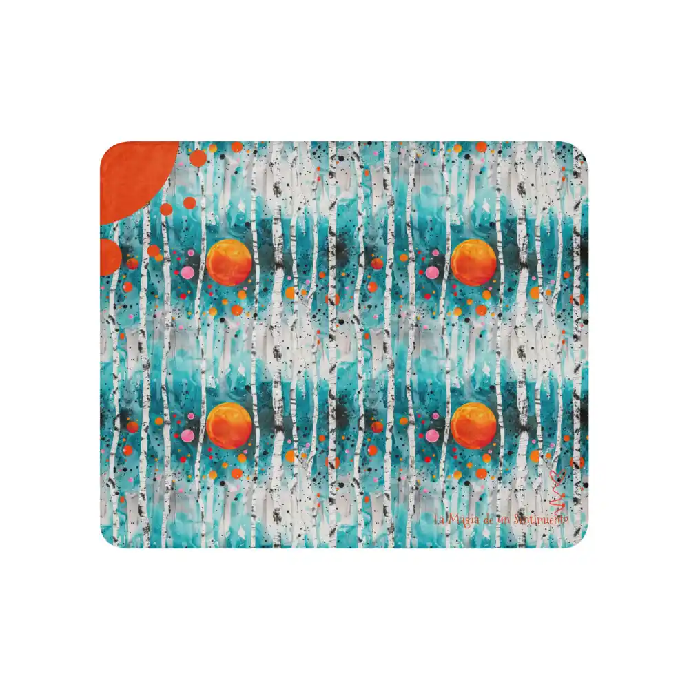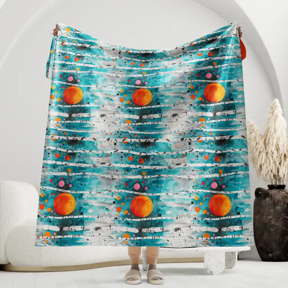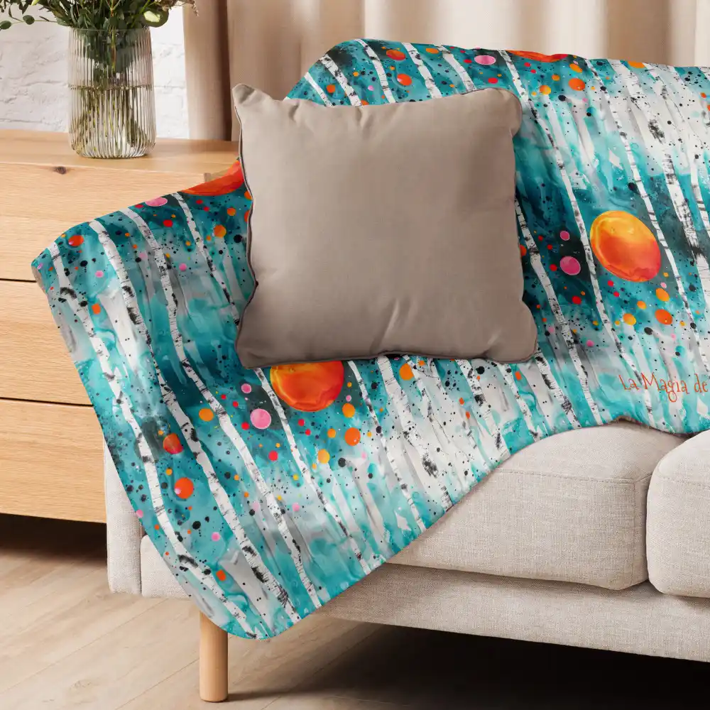 Manta de Calma con motivos coloridos de bosque en azul y naranja