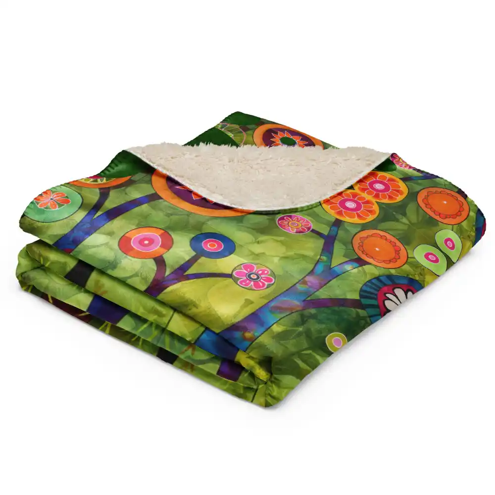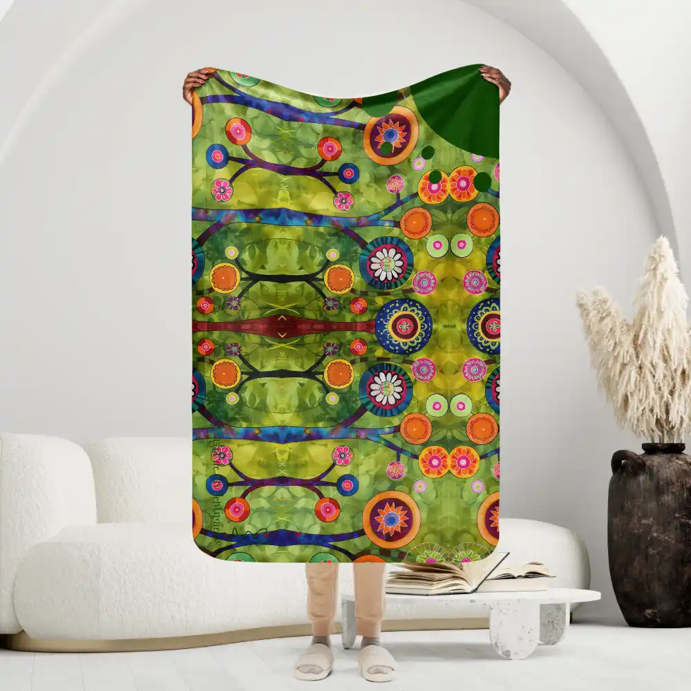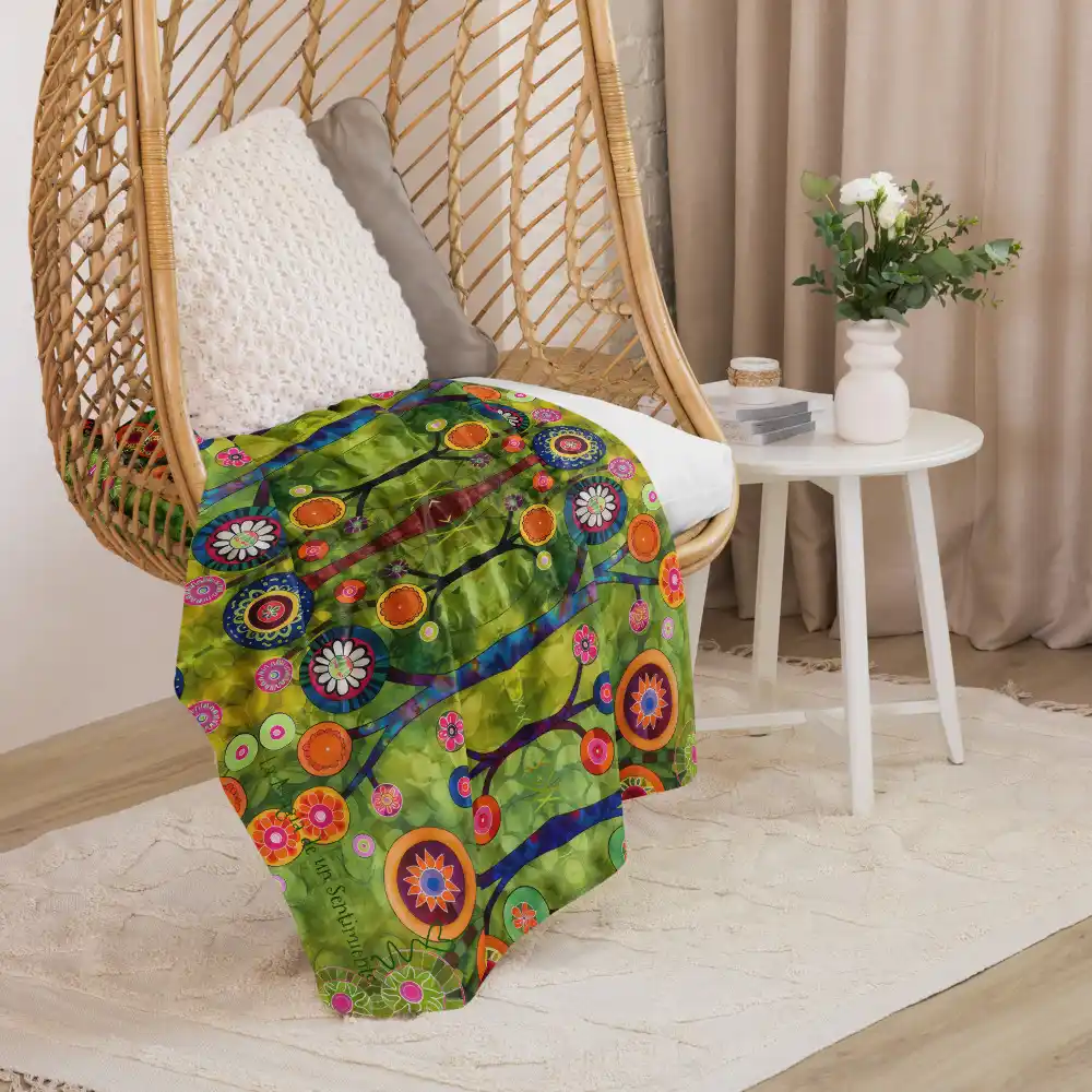Manta de Reflejo con motivos coloridos de bosque en verde y naranja
