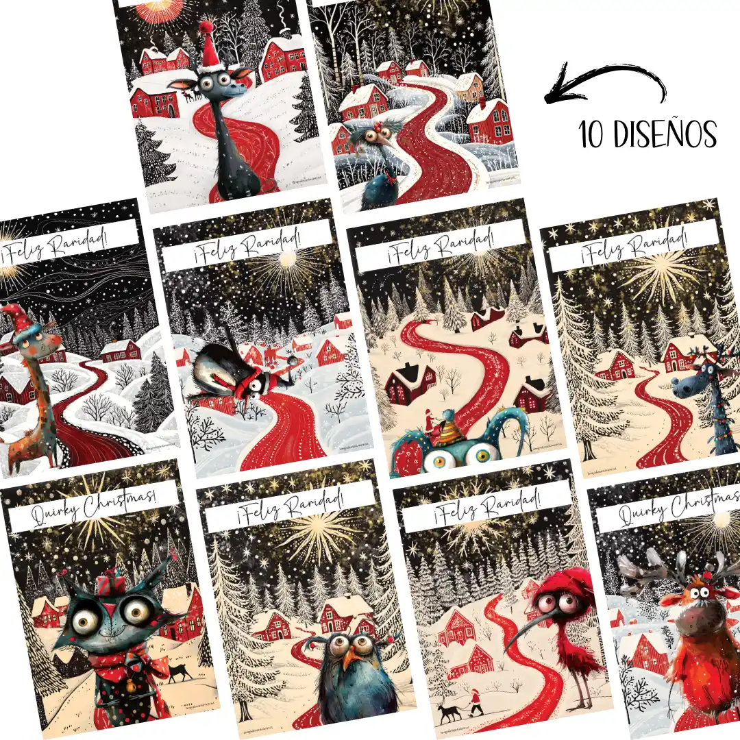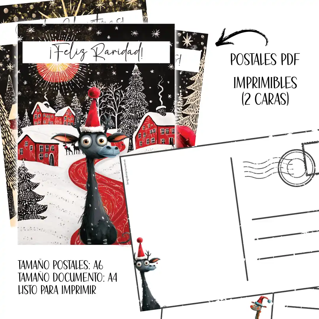 🎄 Postales de Navidad “Feliz Raridad” 🎄 | PDF Imprimible | 🎅 Diseños Divertidos y Peculiares