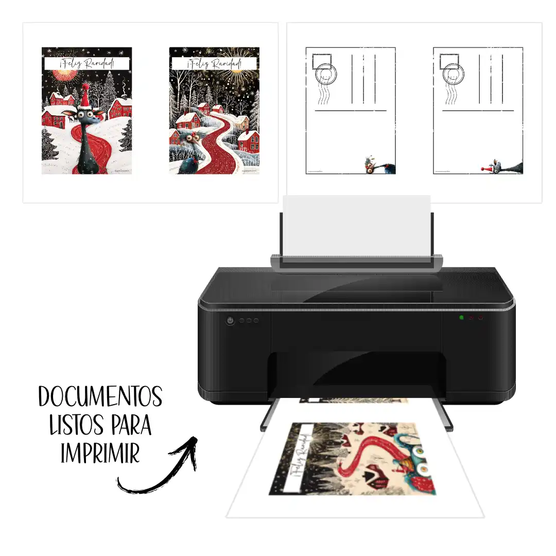 📄 Formato PDF A4: Cada página contiene dos postales (frontal y reverso), listas para imprimir en cualquier impresora.