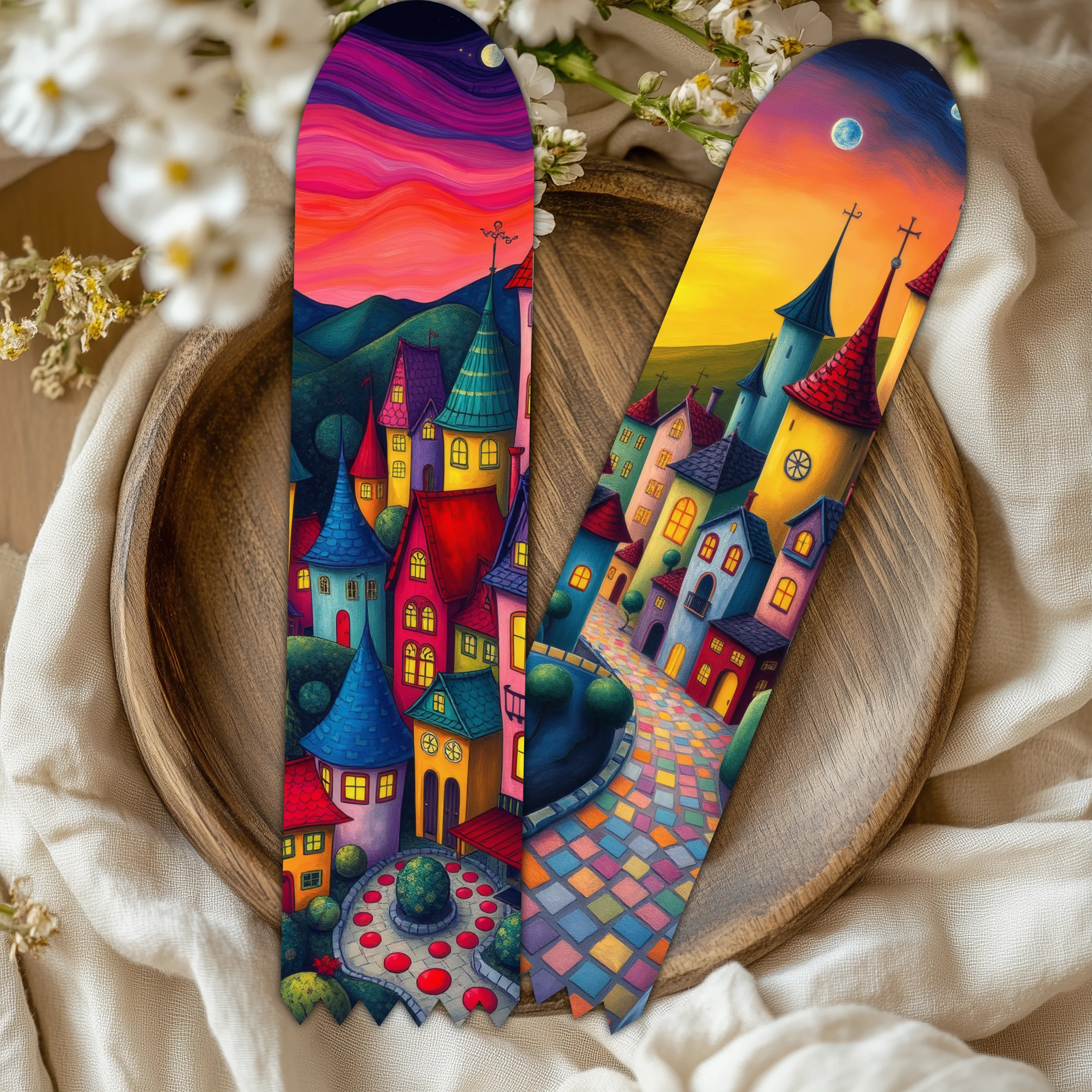 🖨️ Detalles del Producto: 📏 10 diseños únicos de separadores con pueblos de fantasía