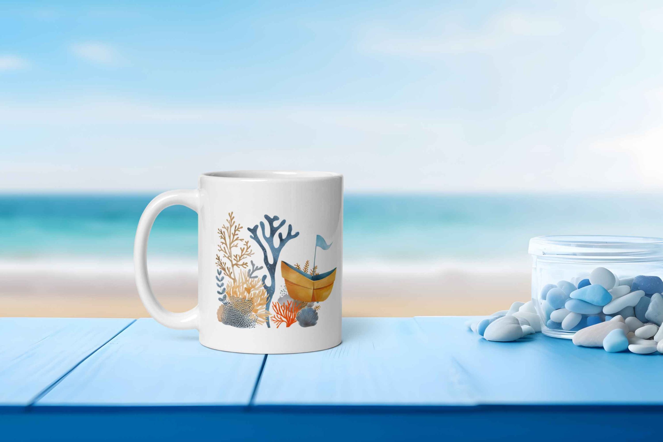 ¡Regala alegría con esta taza de cerámica con colores vivos y vida marina!
