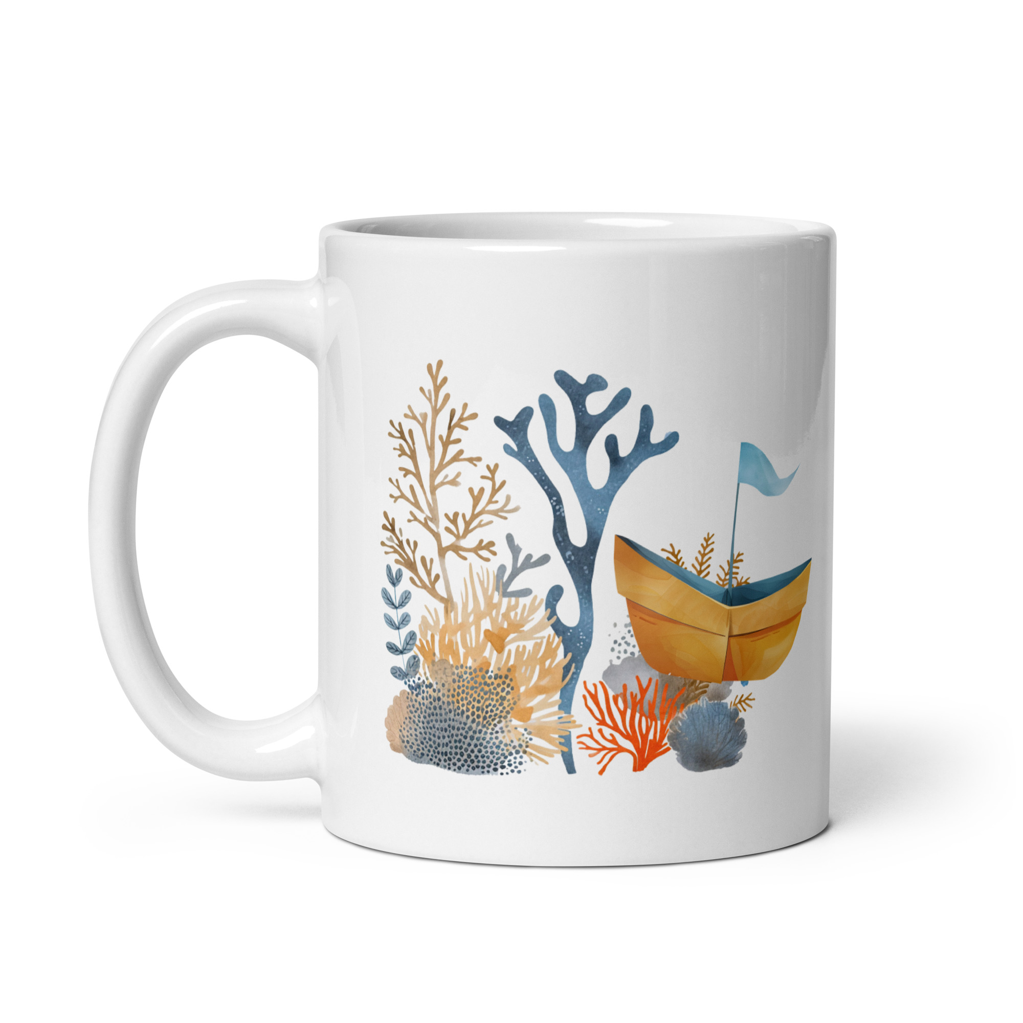 Disfruta de tus momentos de café, té, chocolate e infusión con un toque de alegría gracias a nuestra Taza Brillante con decoración del Océano Profundo.