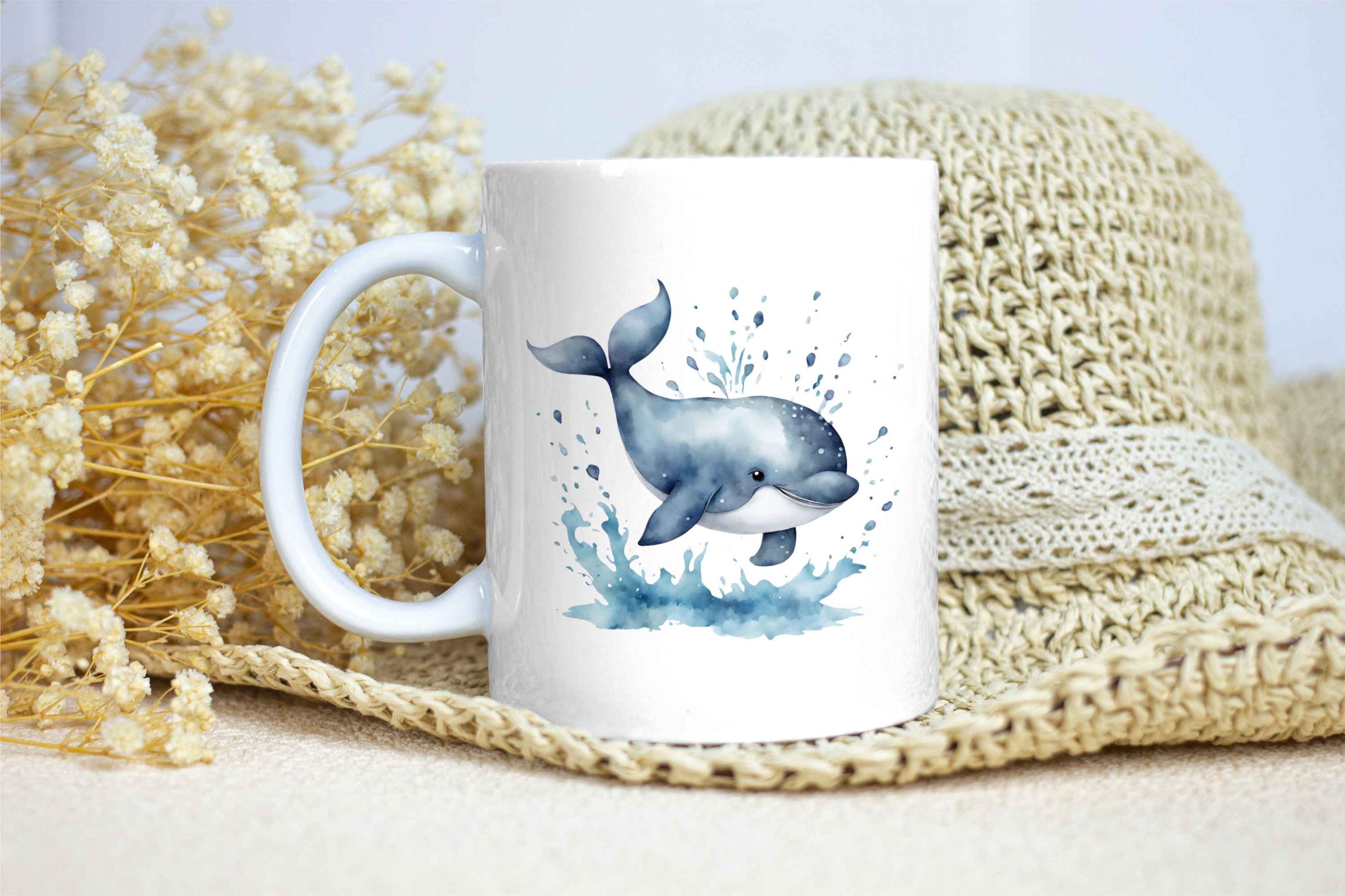 Taza Brillante con Bonita Ballena Azul Sumergiéndose