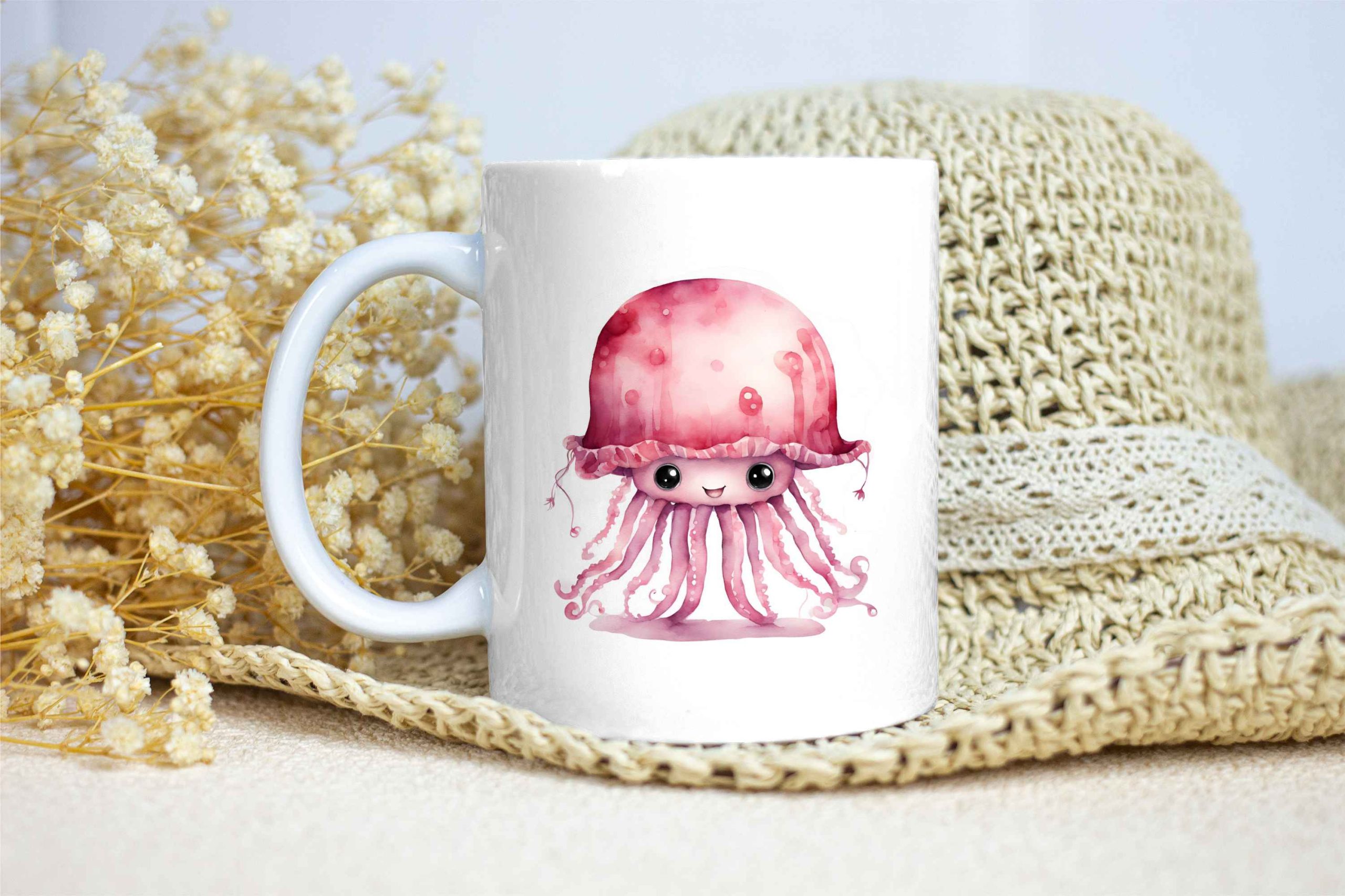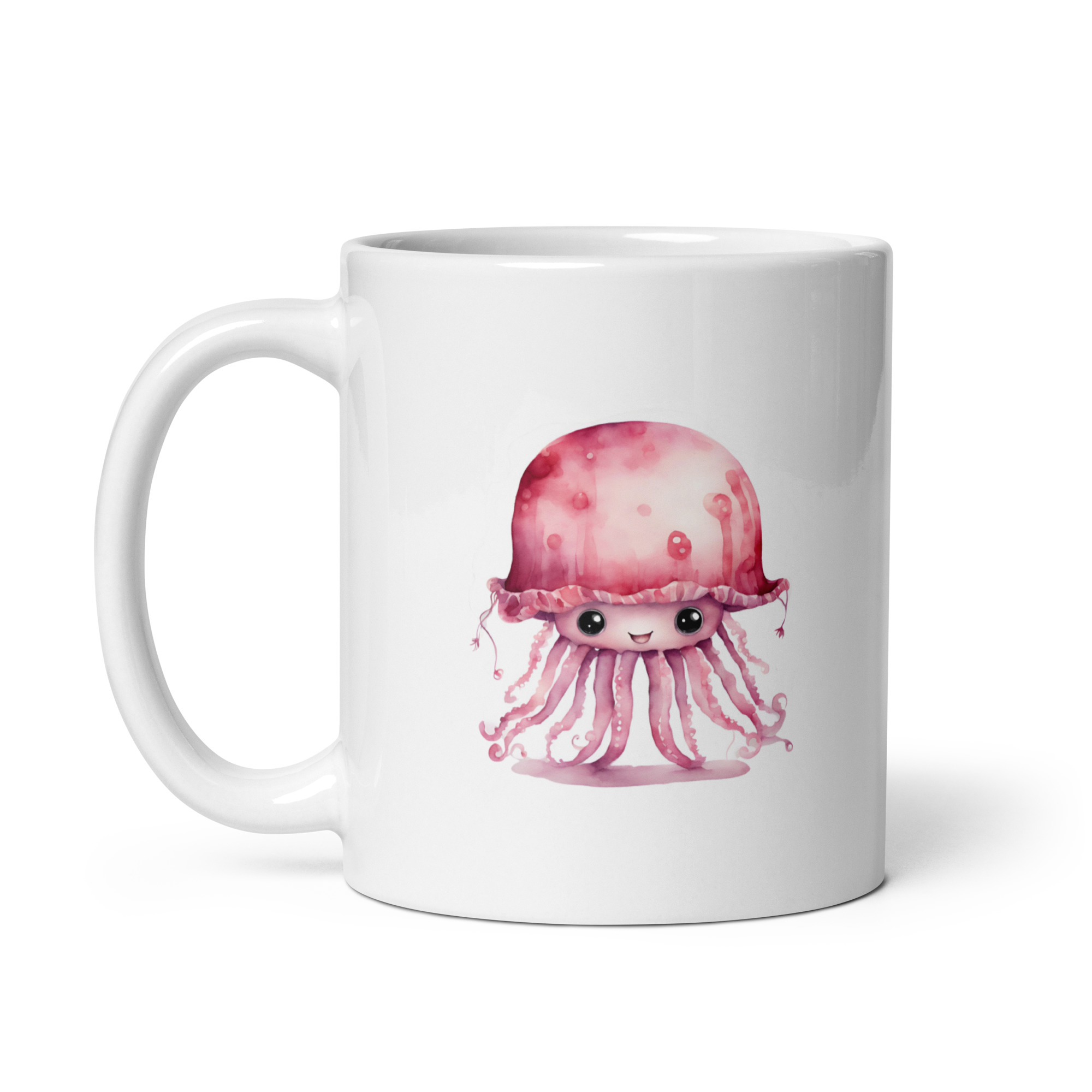 Taza Brillante con Bonita Medusa Rosa con Sombrero Grande