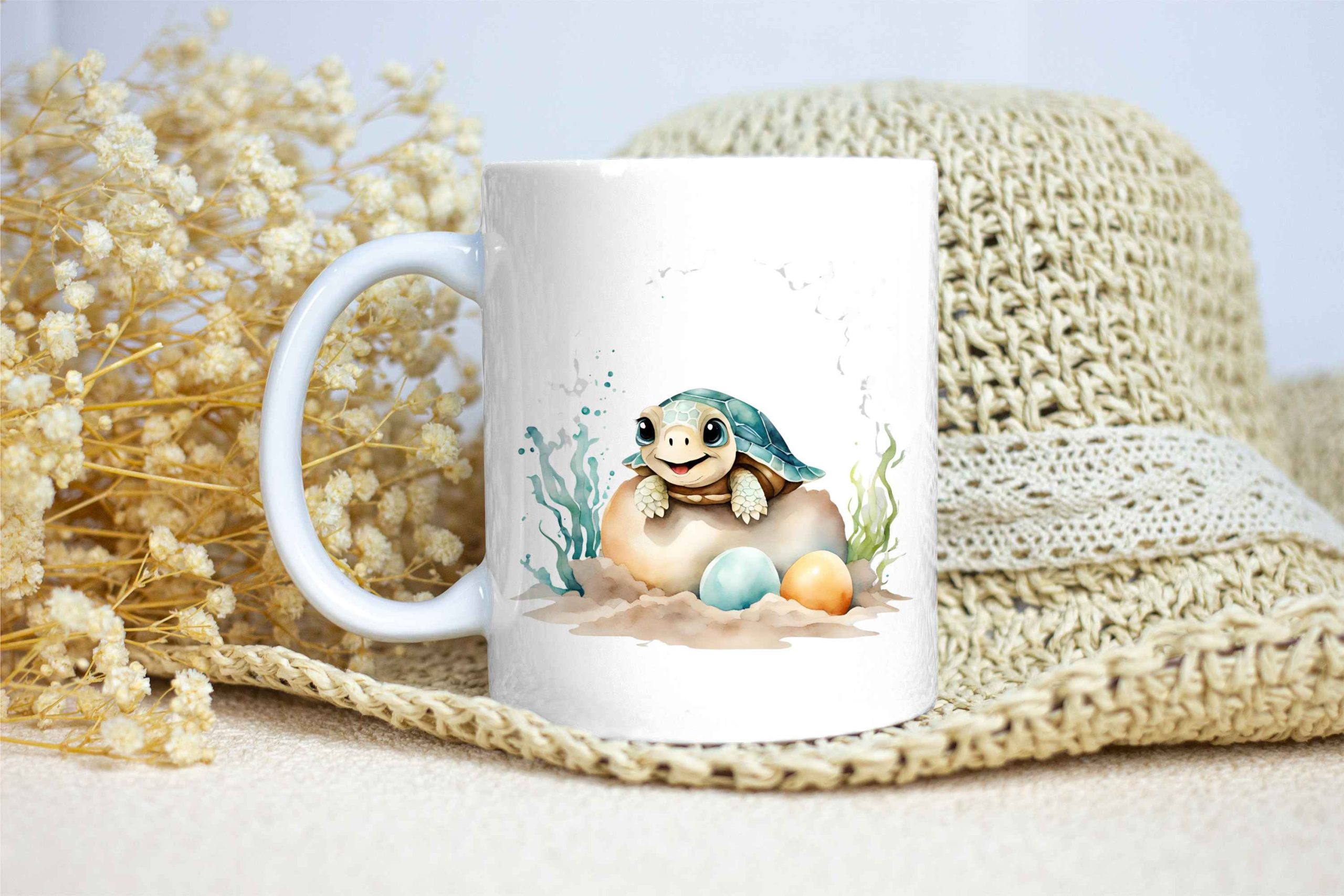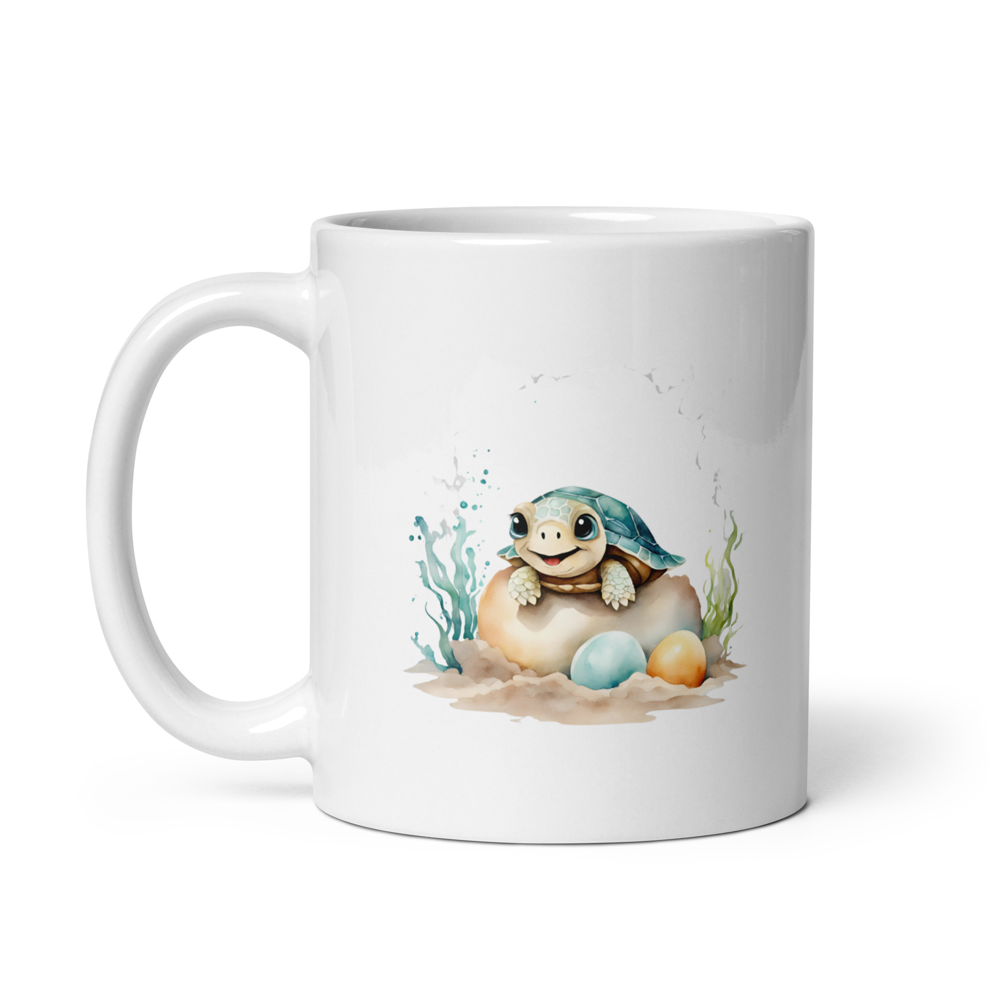 Taza Brillante con Bonita Tortuga Bebé Feliz Saliendo del Cascarón