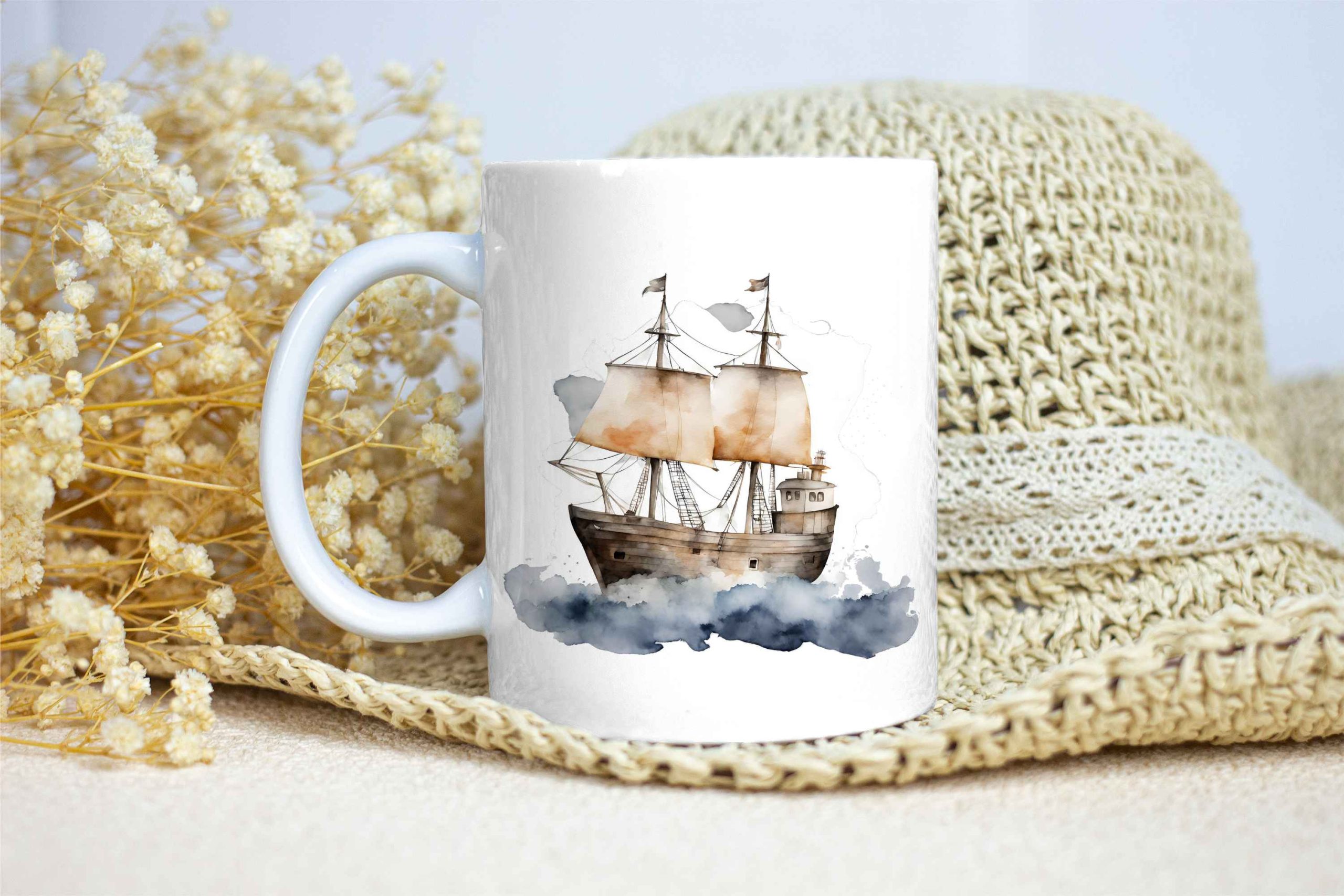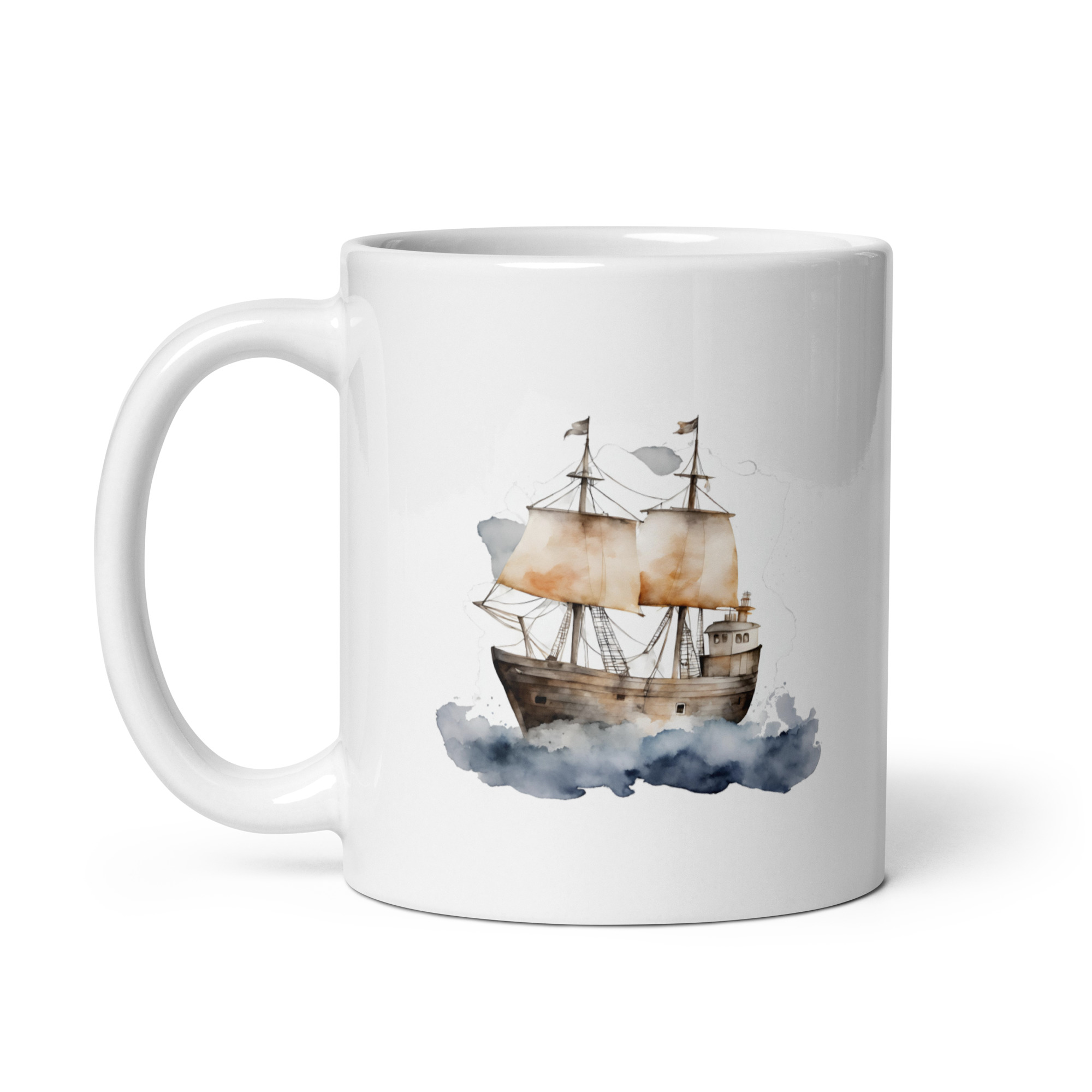 Taza Brillante con Bonito Dibujo Acuarela con Barco de Vela