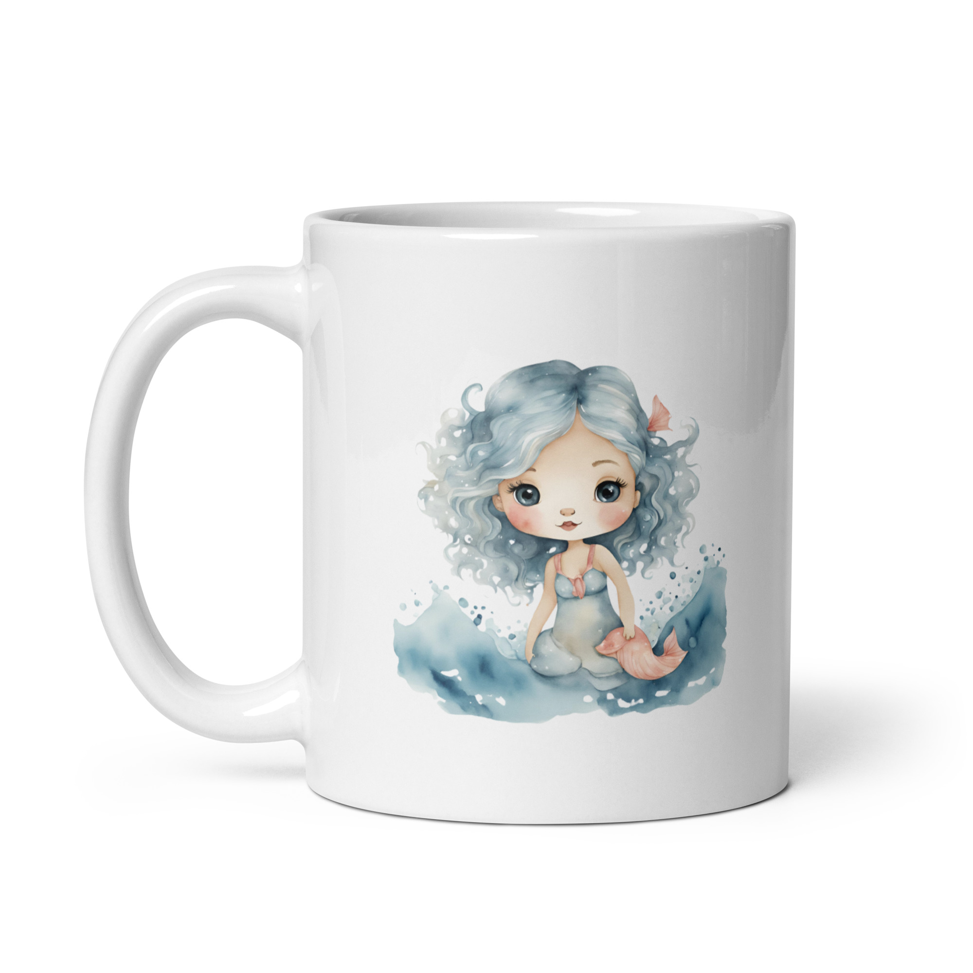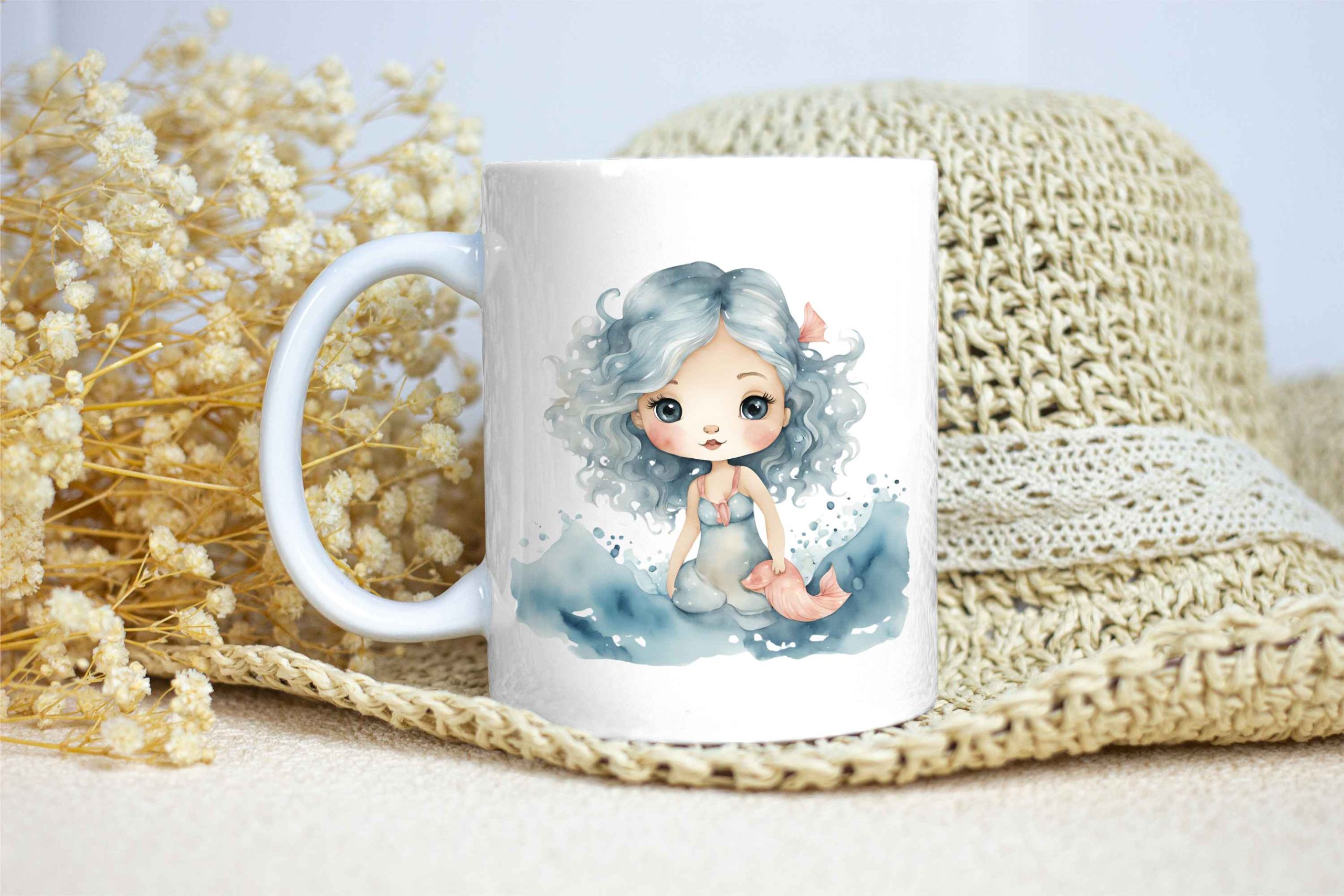 Taza Brillante con Bonito Dibujo de Nereida con Pez y Olas