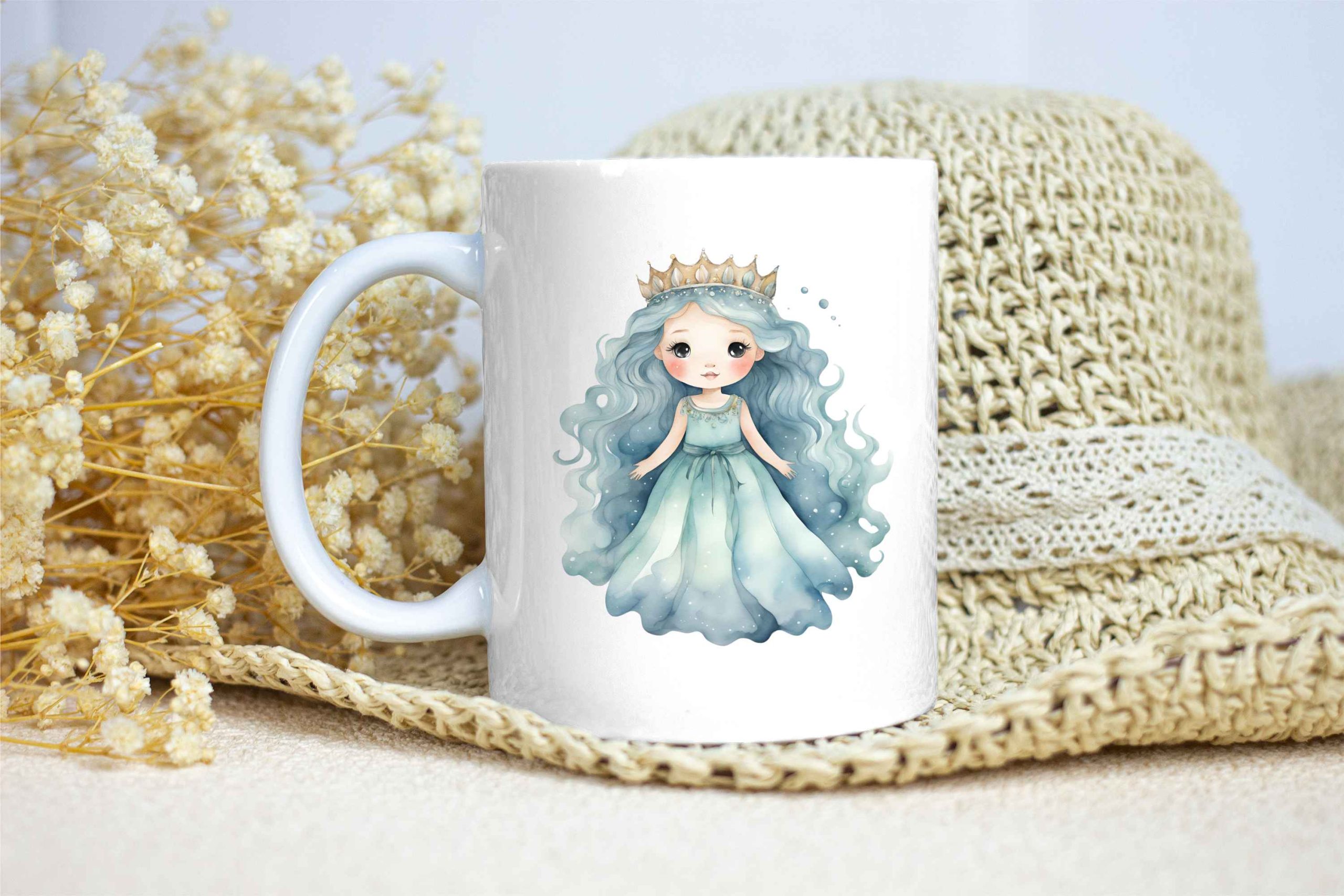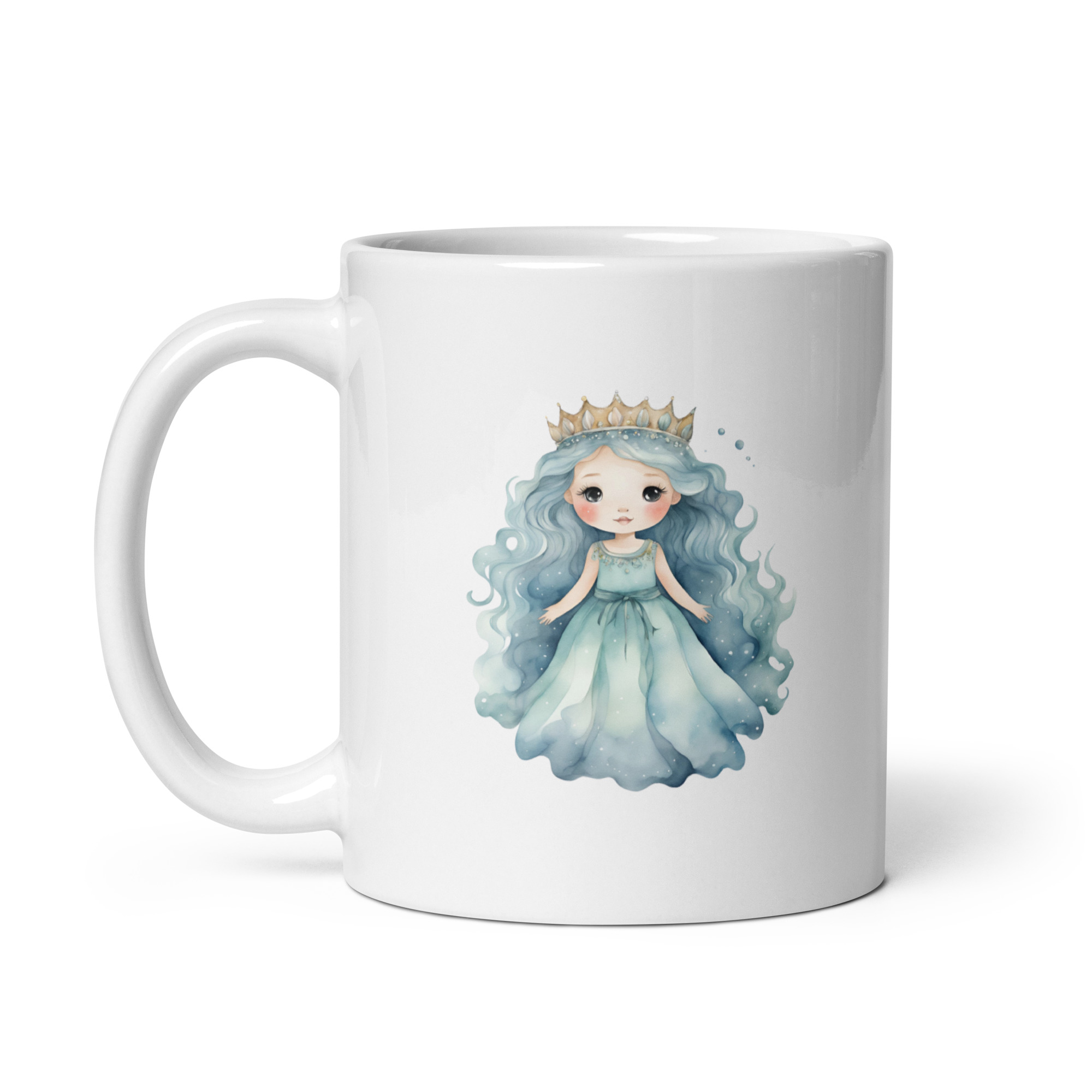 Taza Brillante con Bonito Dibujo de Niña del Océano con Corona y Vestido con cintura