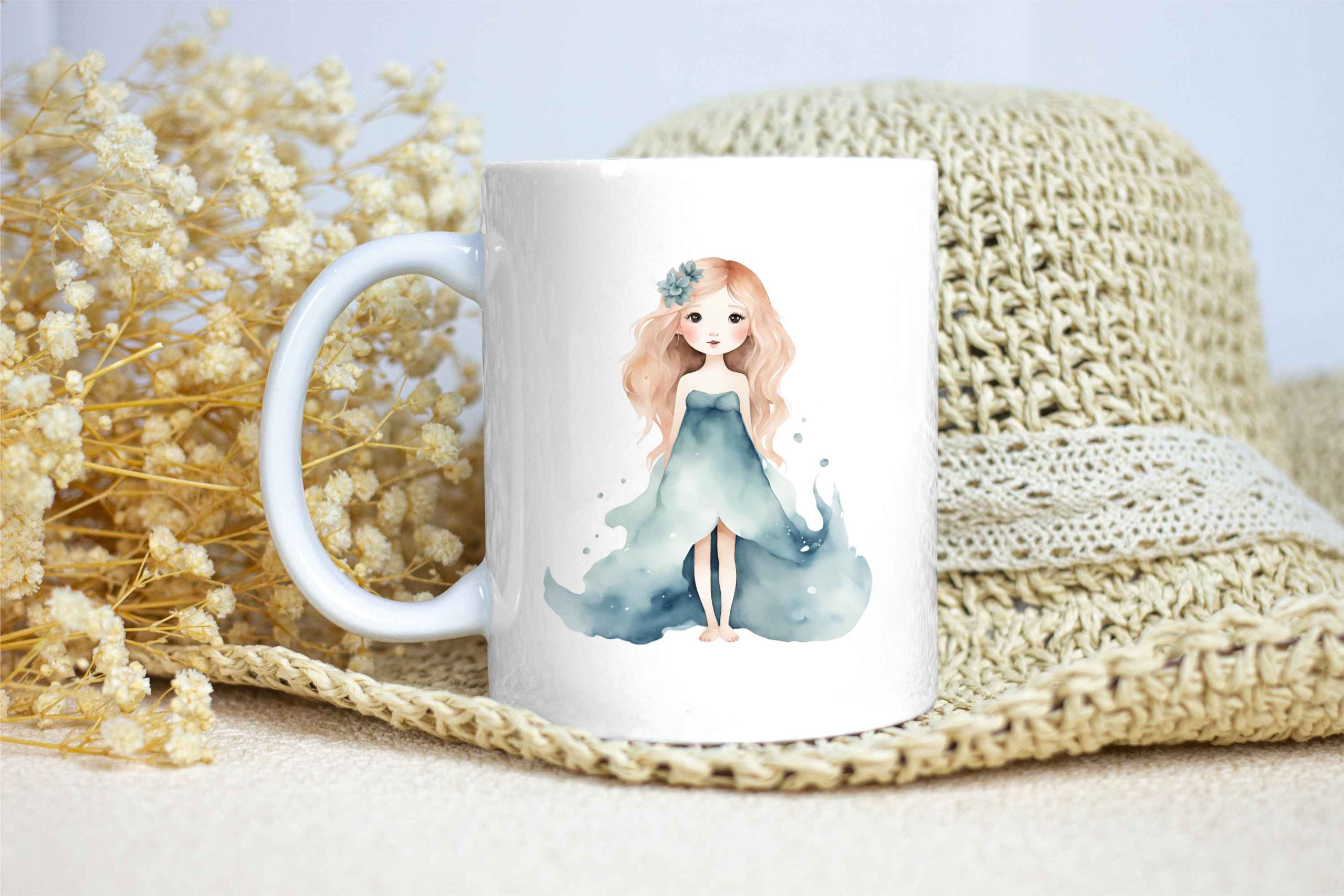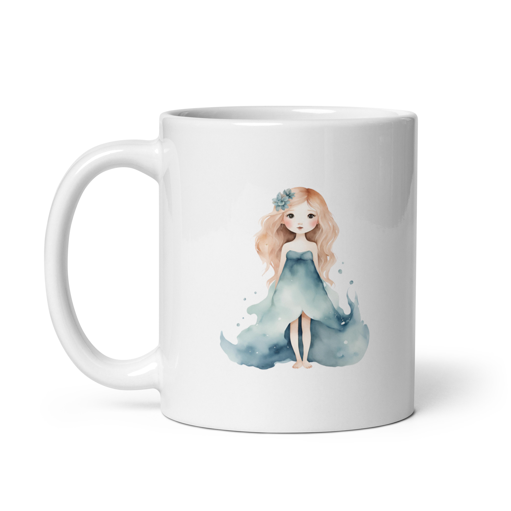 Taza Brillante con Bonito Dibujo de Niña del Océano con Vestido largo y Flor en el pelo