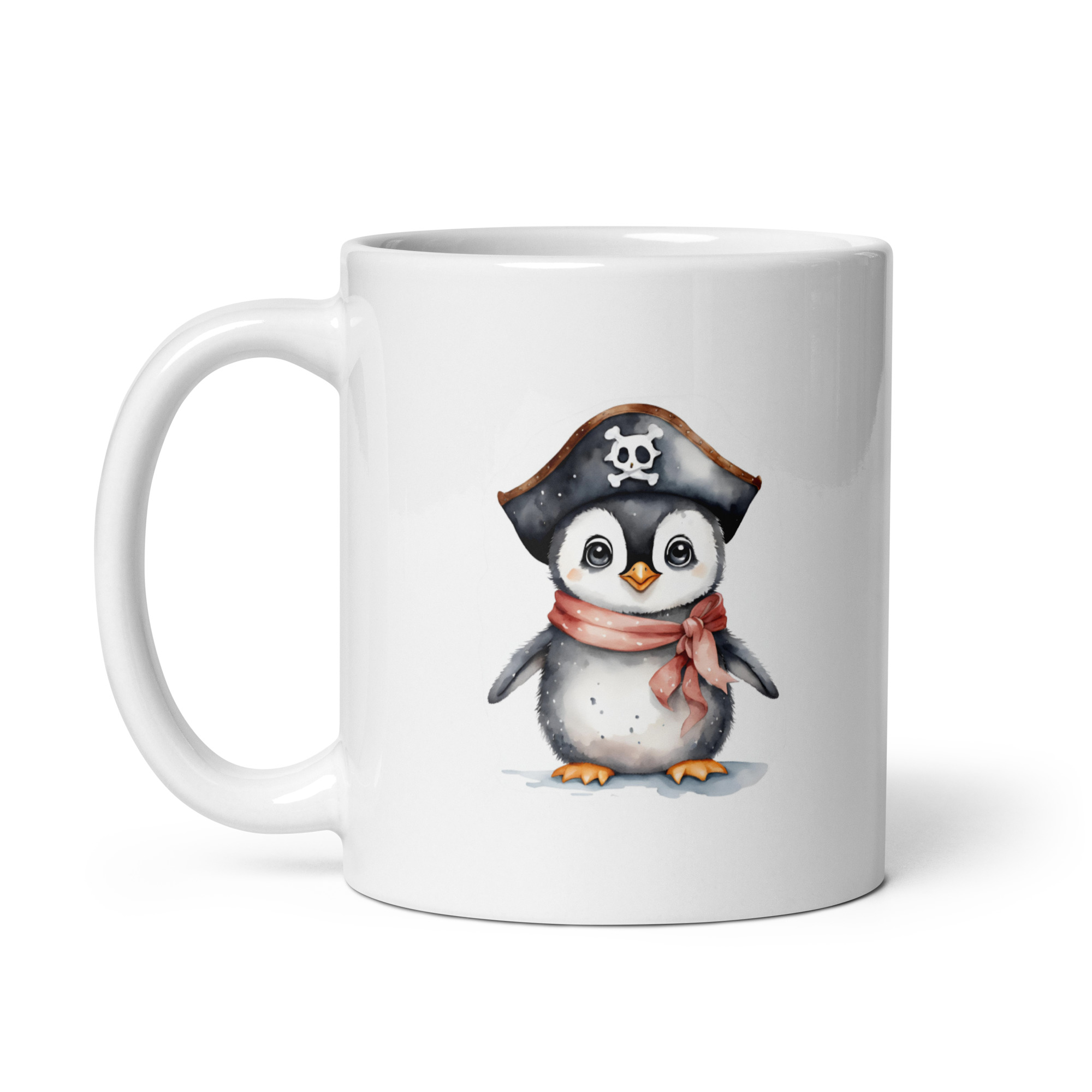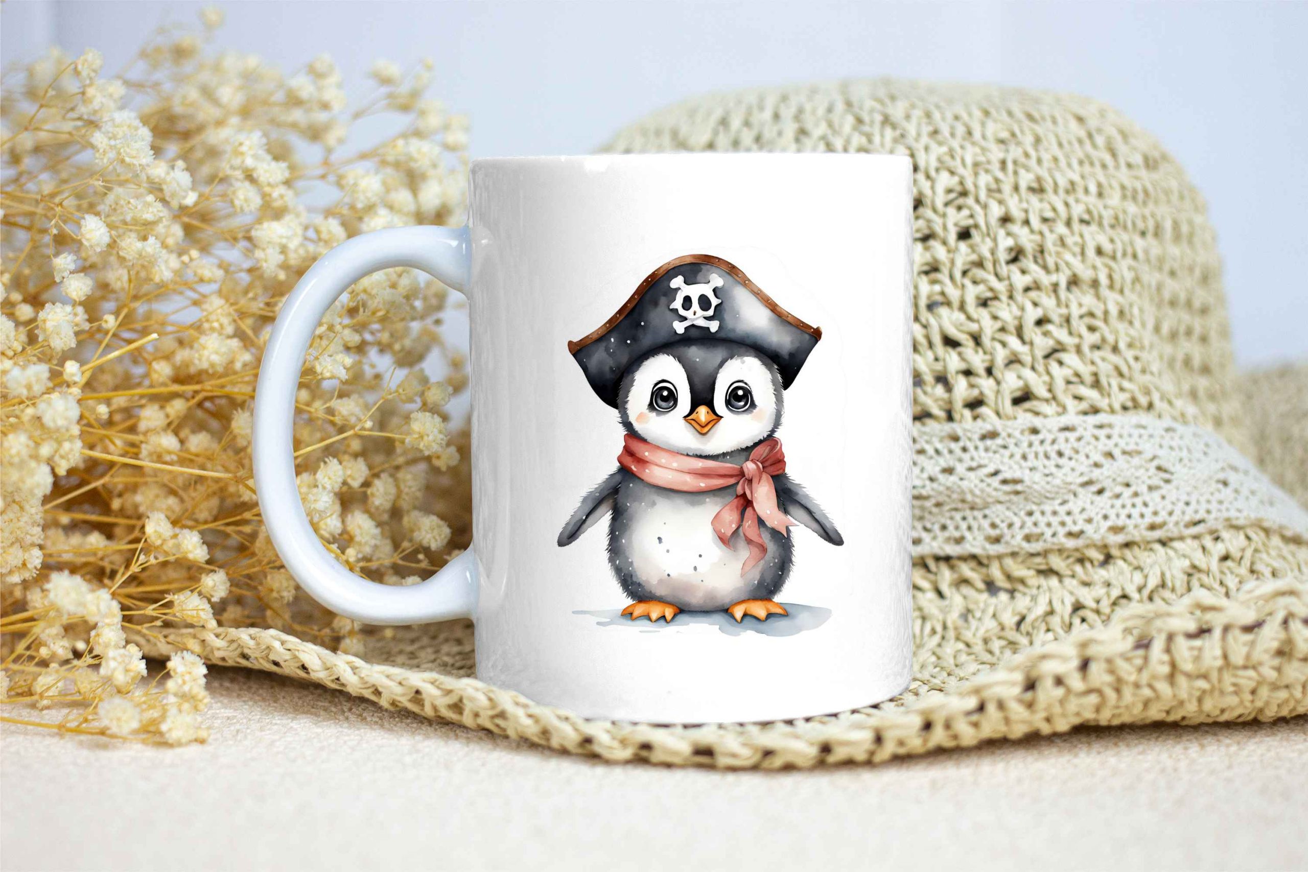 Taza Brillante con Bonito Pingüino con Sombrero Pirata y Pañuelo Rojo