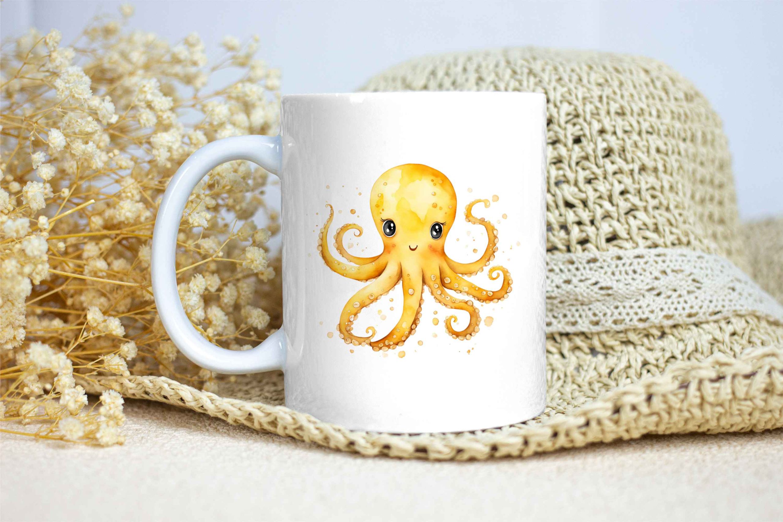 Taza Brillante con Bonito Pulpo Amarillo