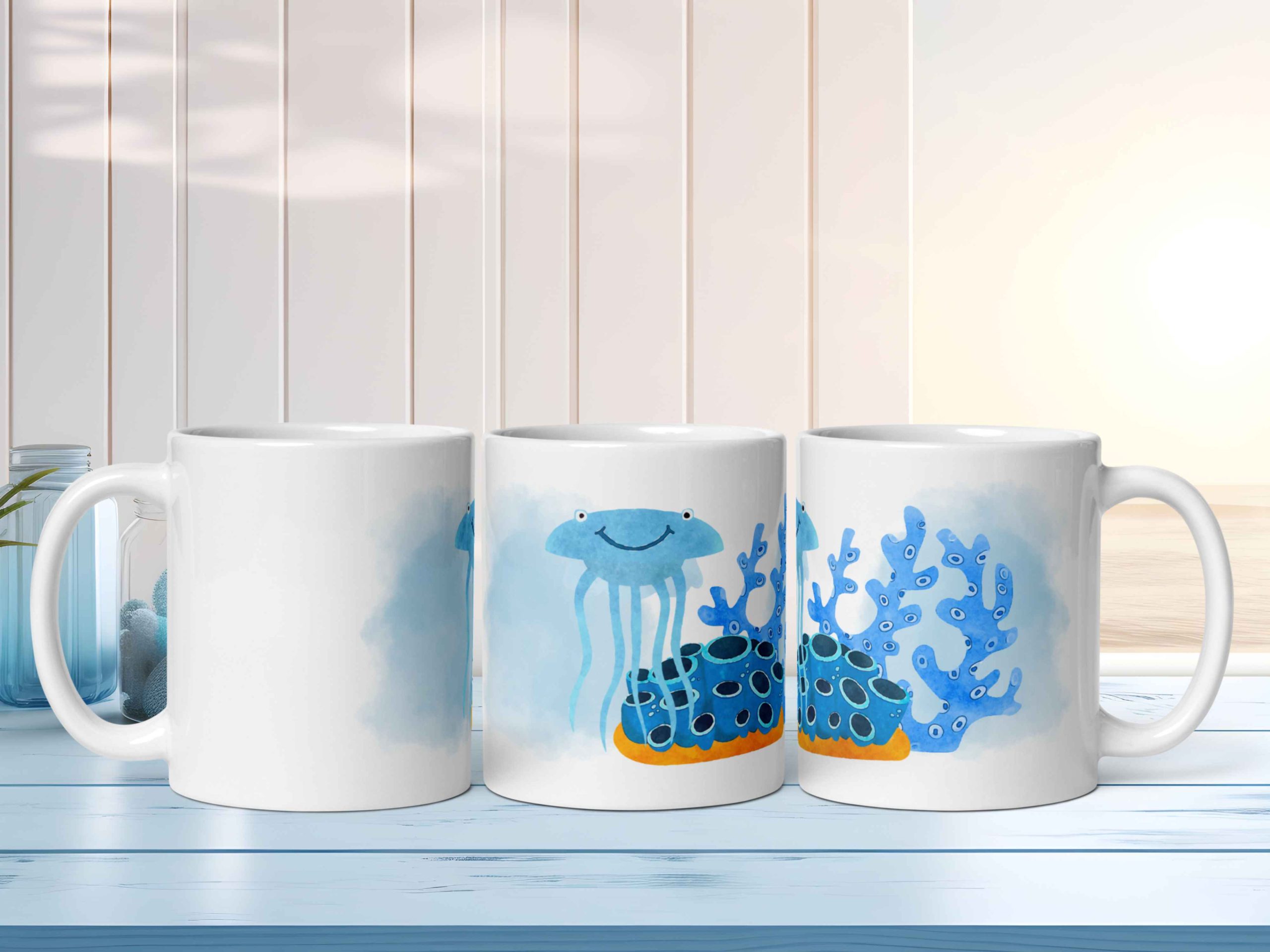 Disfruta de tus momentos de café, té, chocolate e infusión con un toque de alegría gracias a nuestra Taza Brillante con decoración del Océano Profundo.