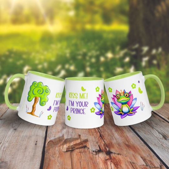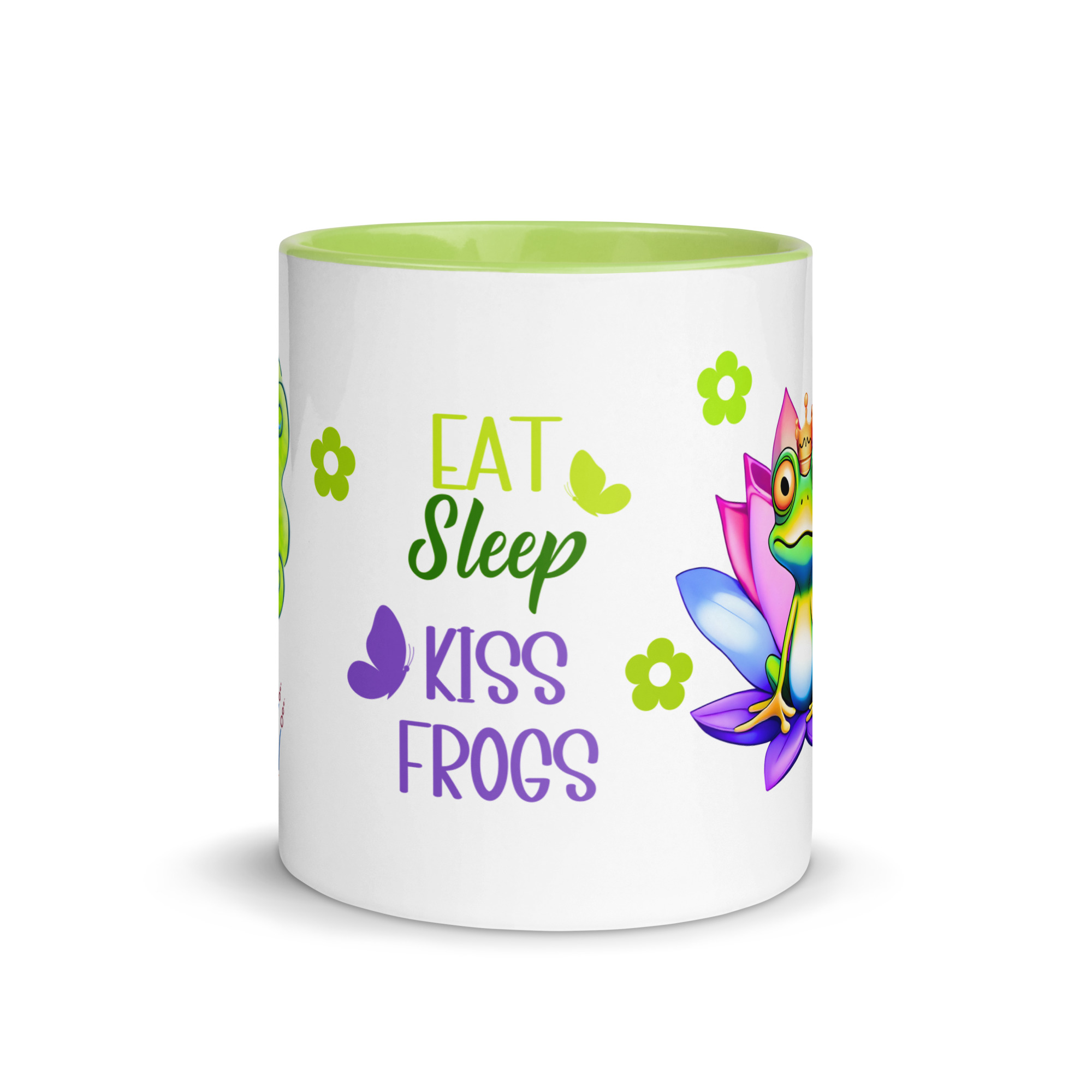 Taza “Eat, Sleep, Kiss Frogs” divertida para amantes de los árboles y las ranas