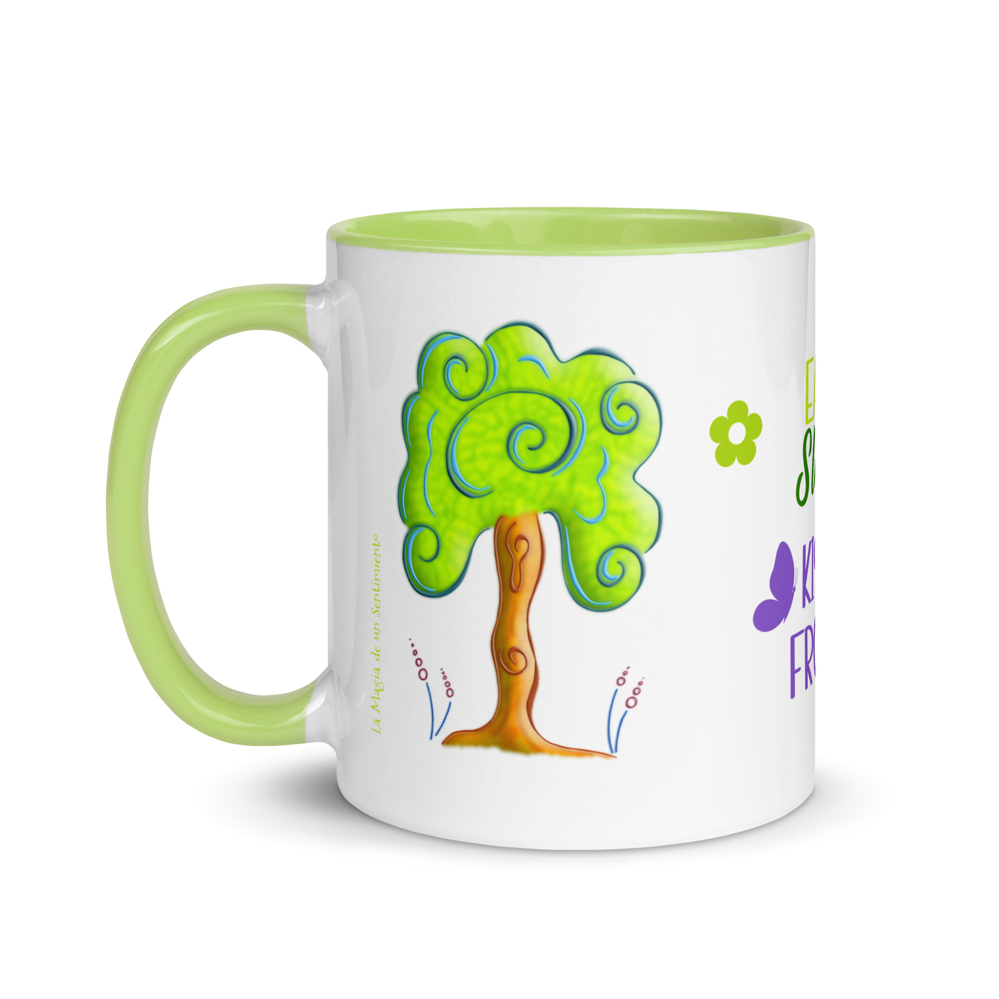 ¡Regala alegría con esta taza de colores vivos, rana, árbol y flores!
