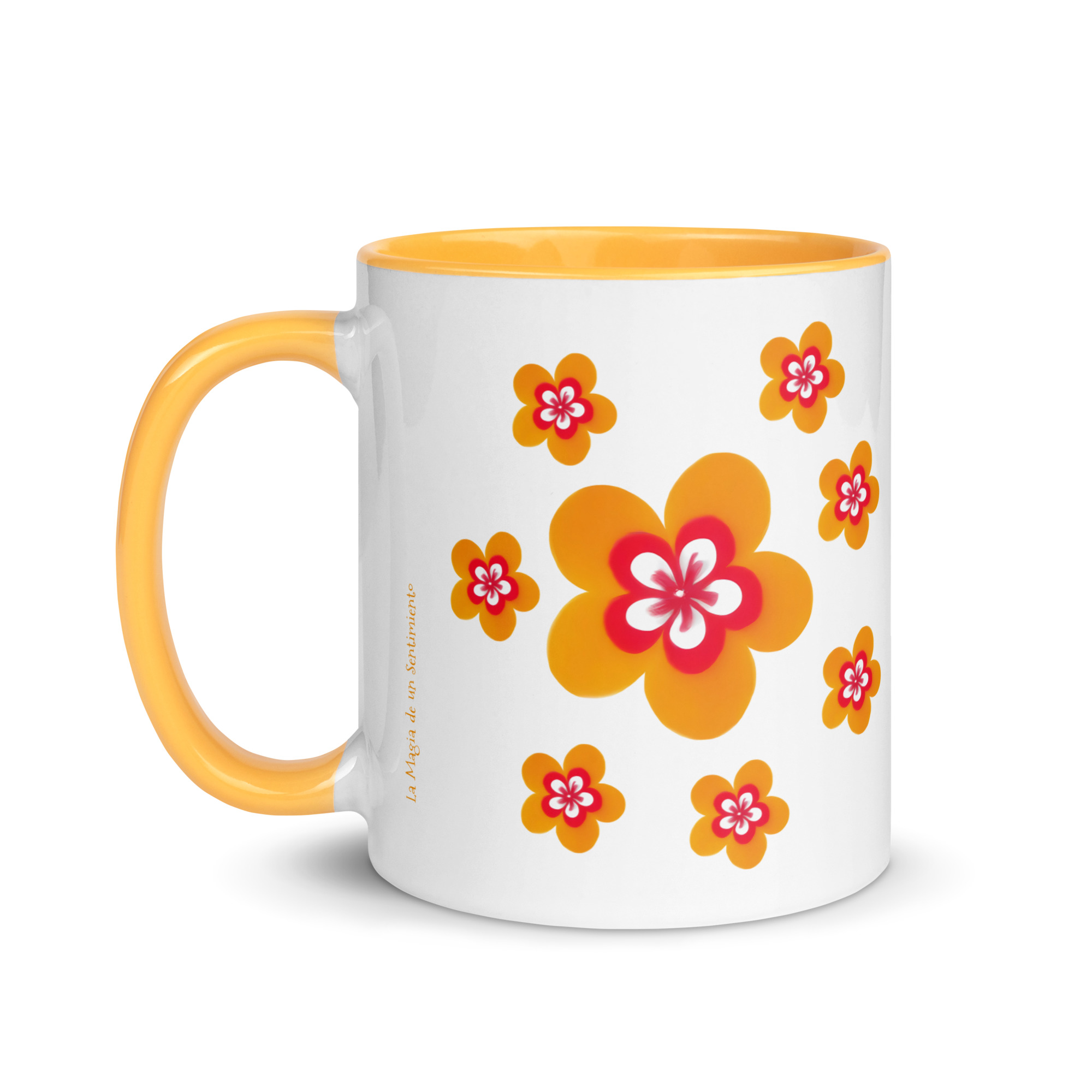 ¡Regala alegría con esta taza de colores vivos y flores bailando!