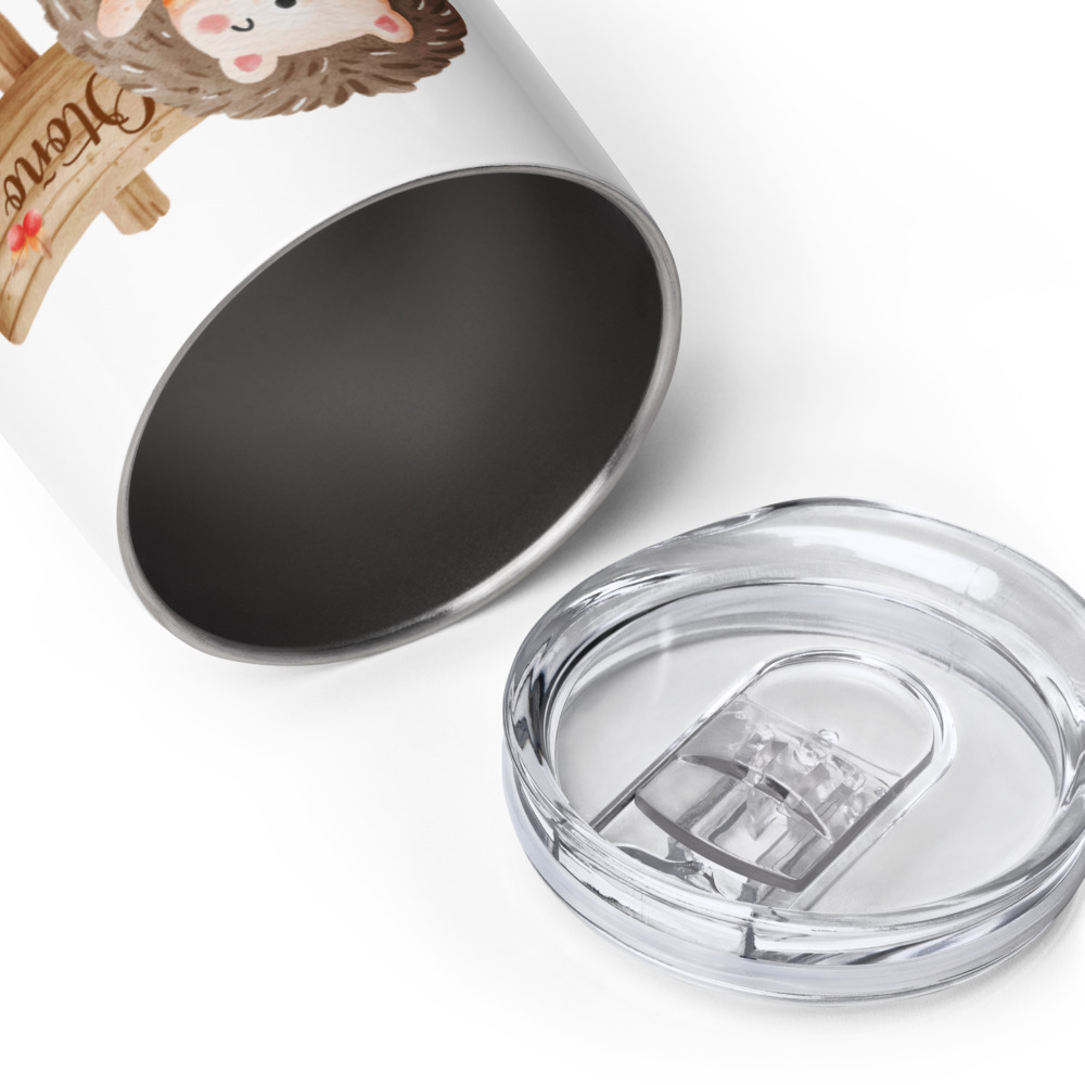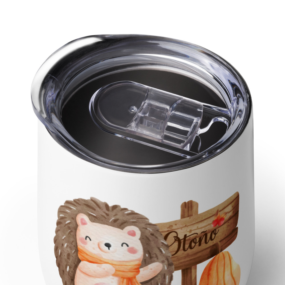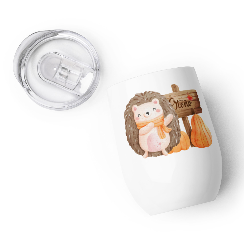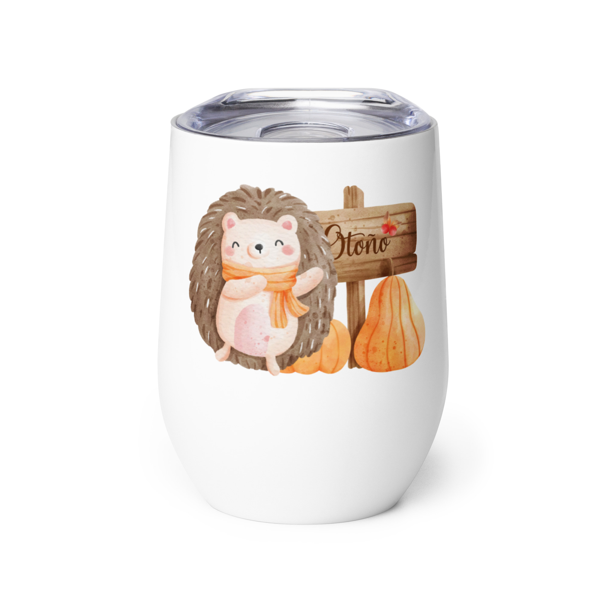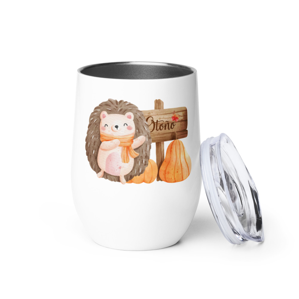 Ternura en un Vaso. Divertido Erizo con Calabazas en Otoño. Para Zumo, Vino, Té. Térmico.