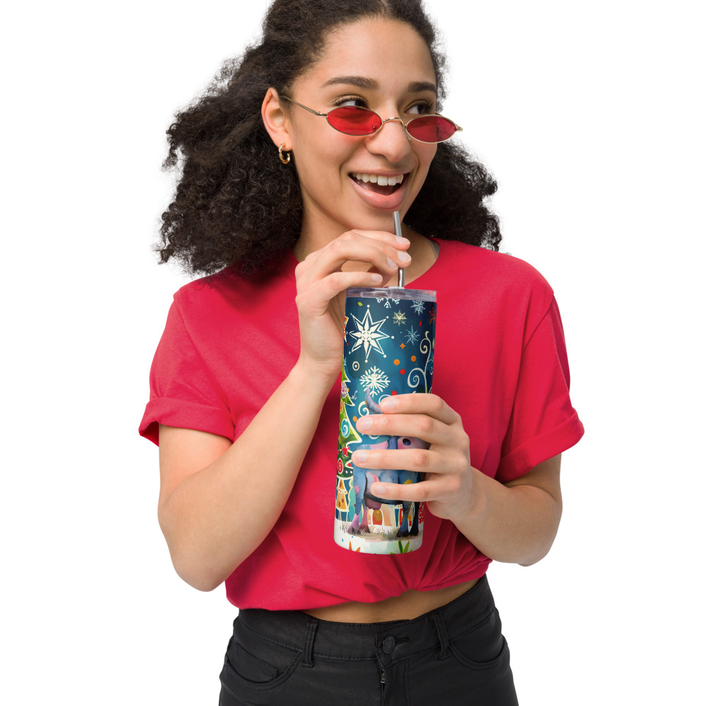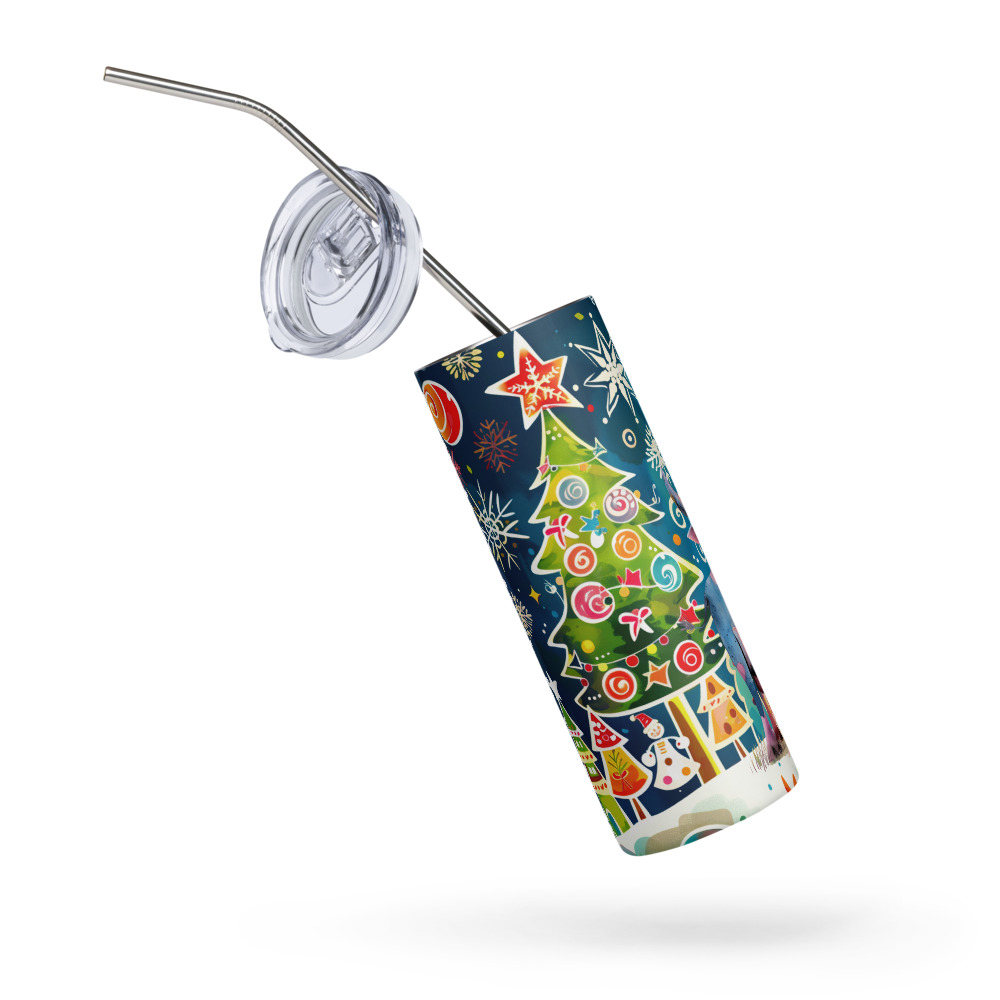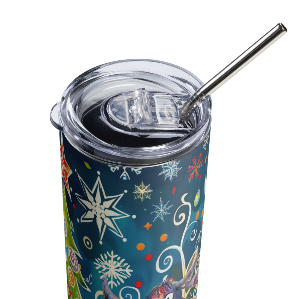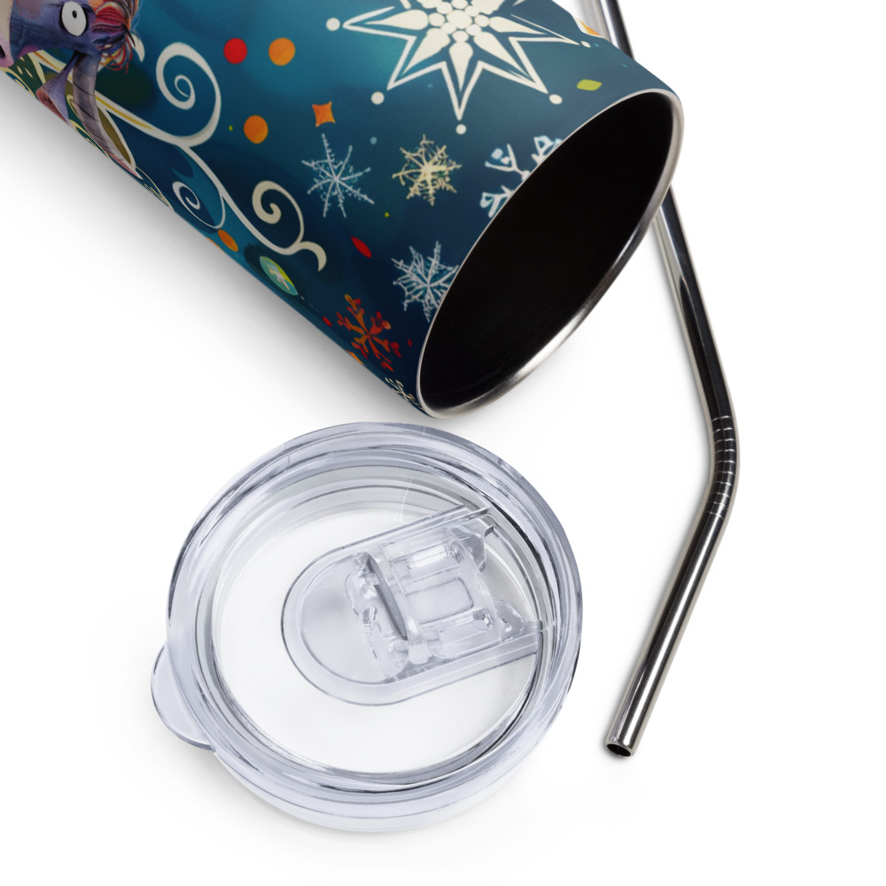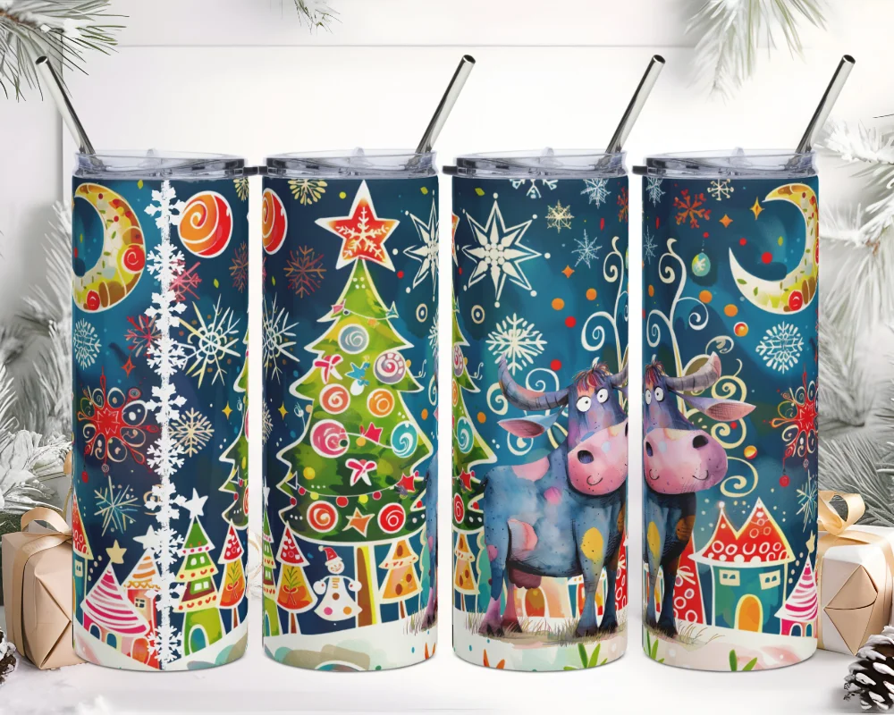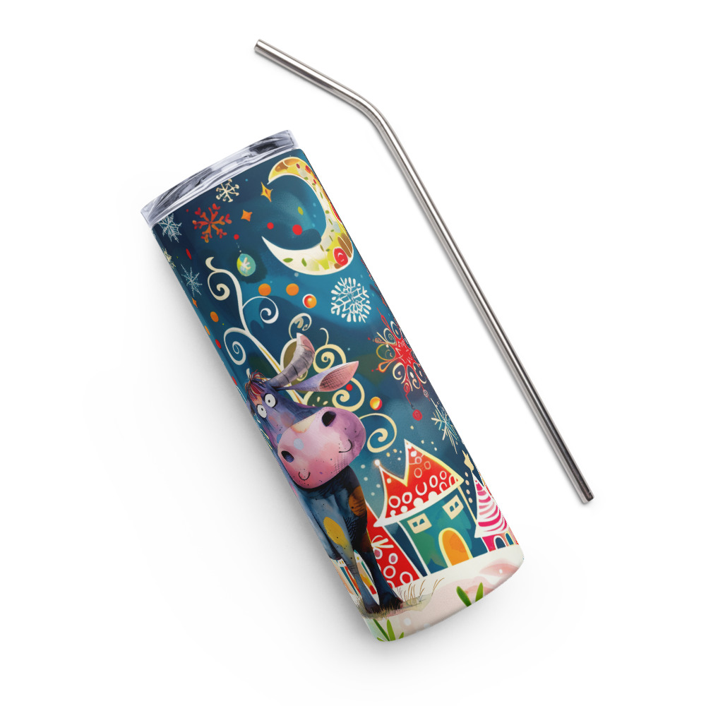 Vaso de acero inoxidable con bonita Vaca con colorido fondo Navideño