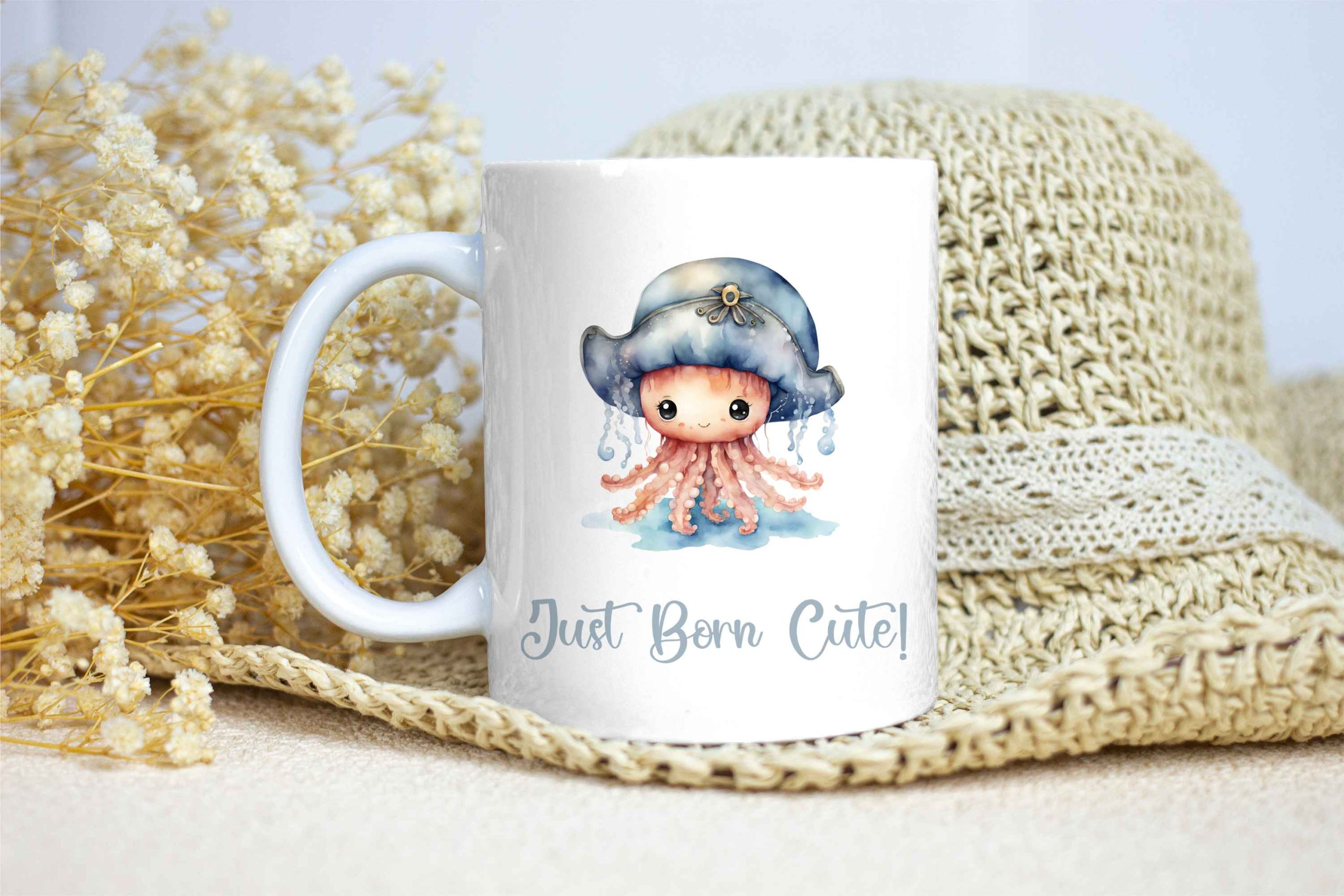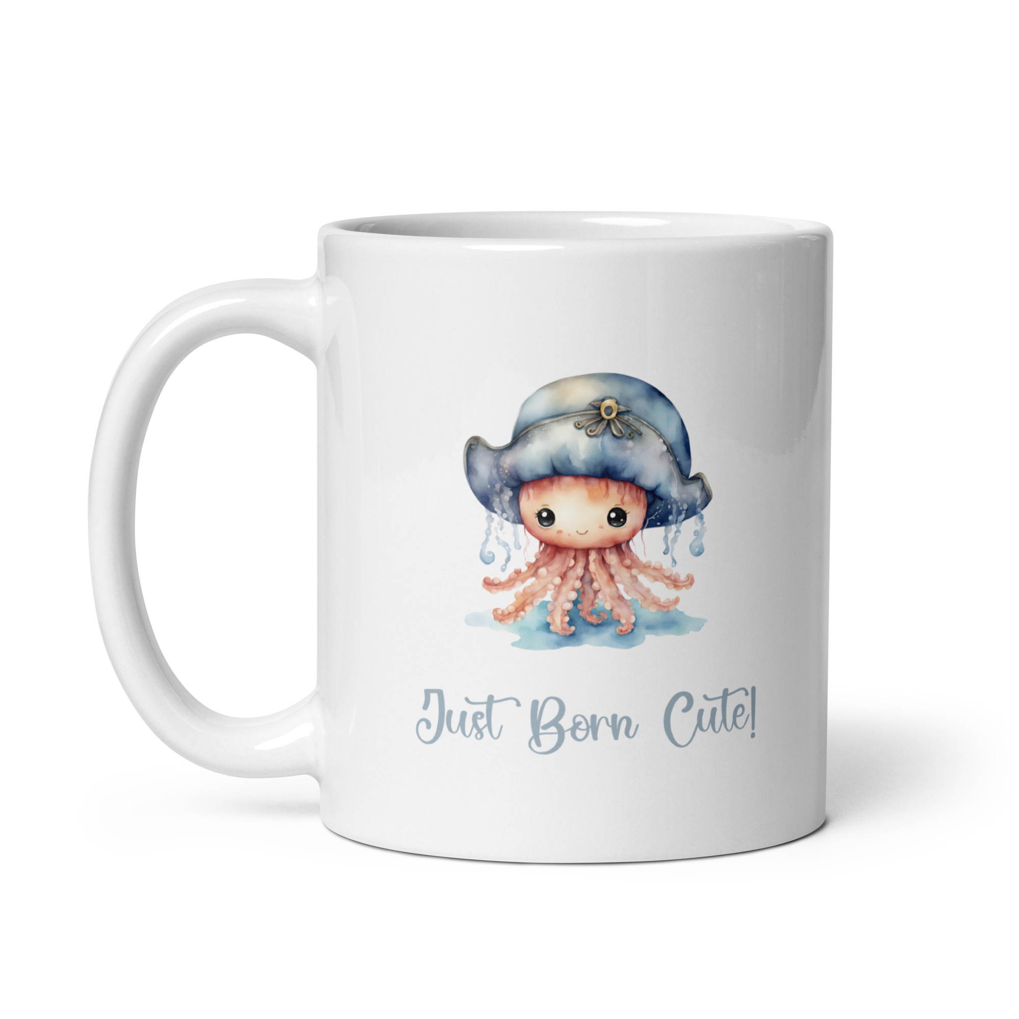White Glossy Mug for Gifting – Just Born Cute – Jellyfish