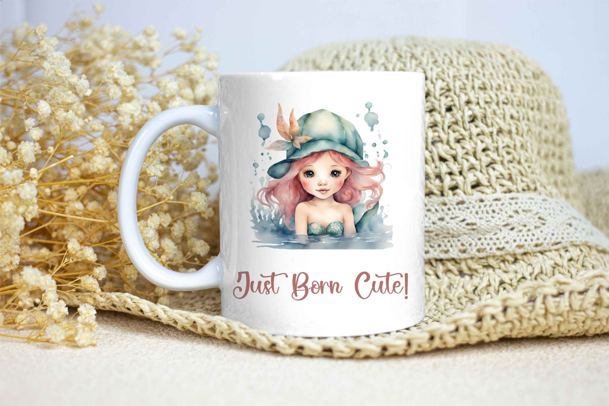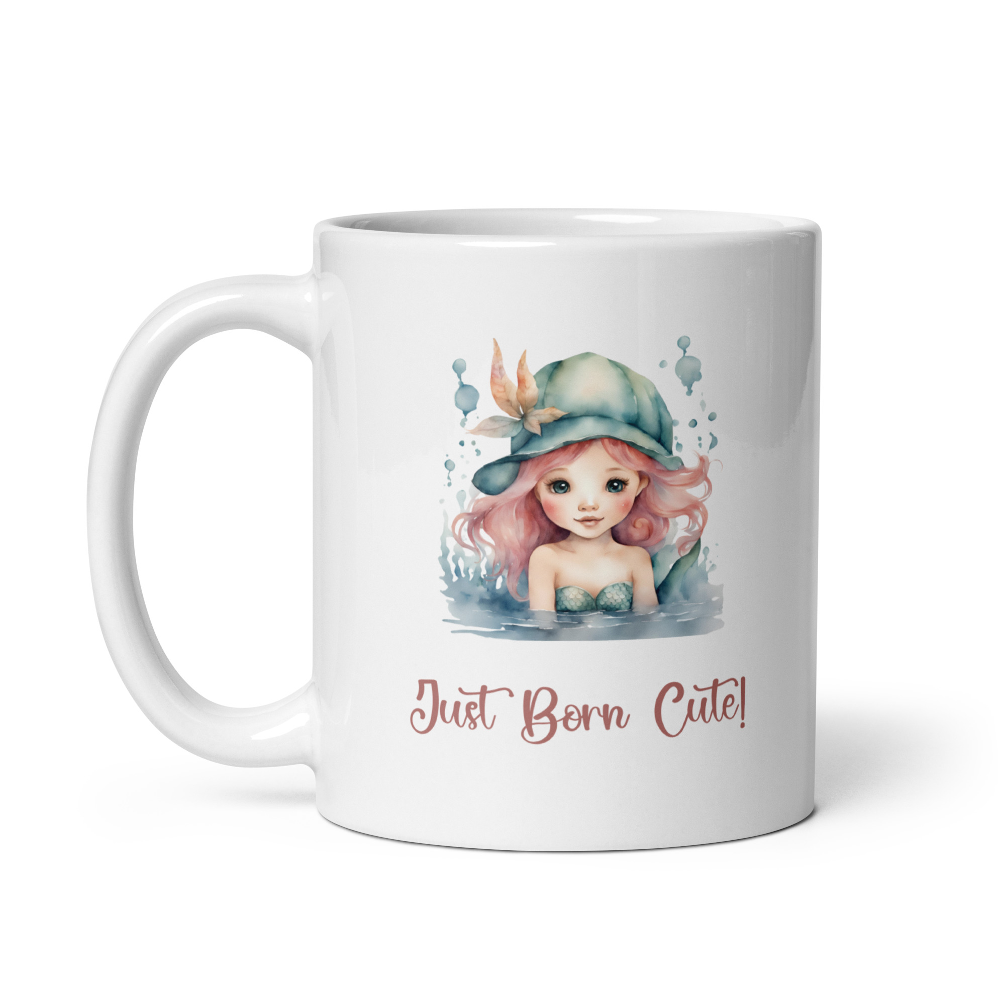 White Glossy Mug for Gifting – Just Born Cute – Mermaid Pink